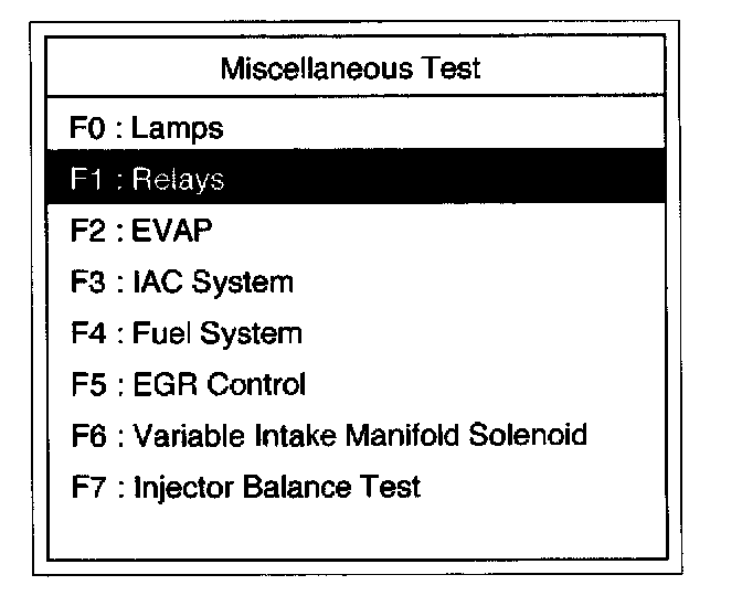 4. Select F1: Relay Test in the Miscellaneous Test.