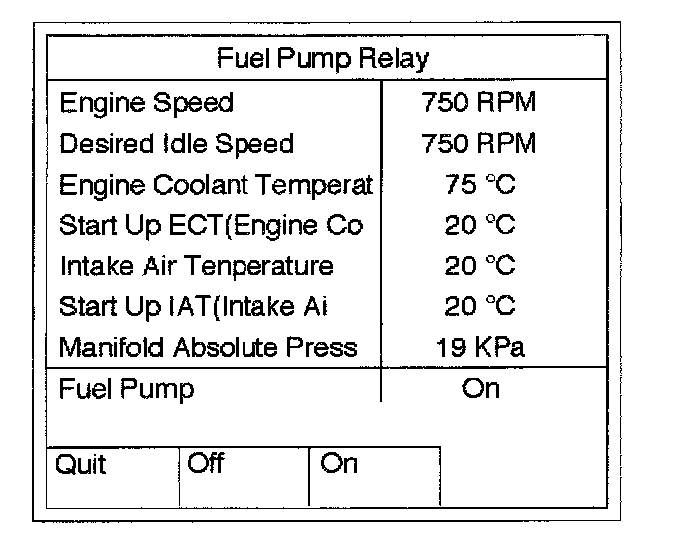 This test is conducted to check Fuel Pump Relay and A/C Clutch for proper operation.Tech 2 must be used for this test.
