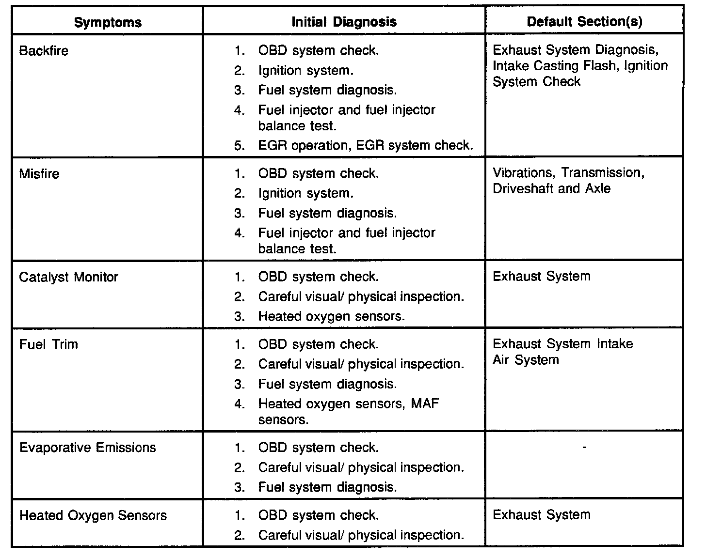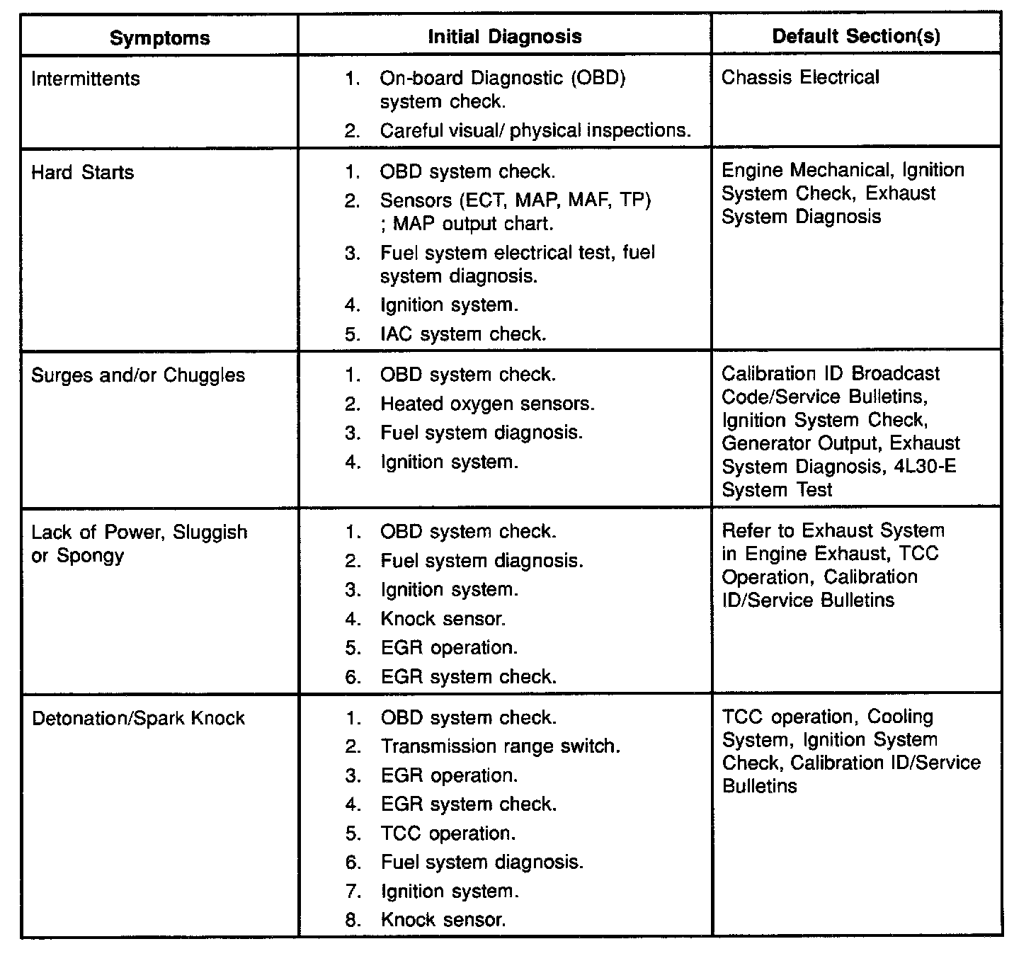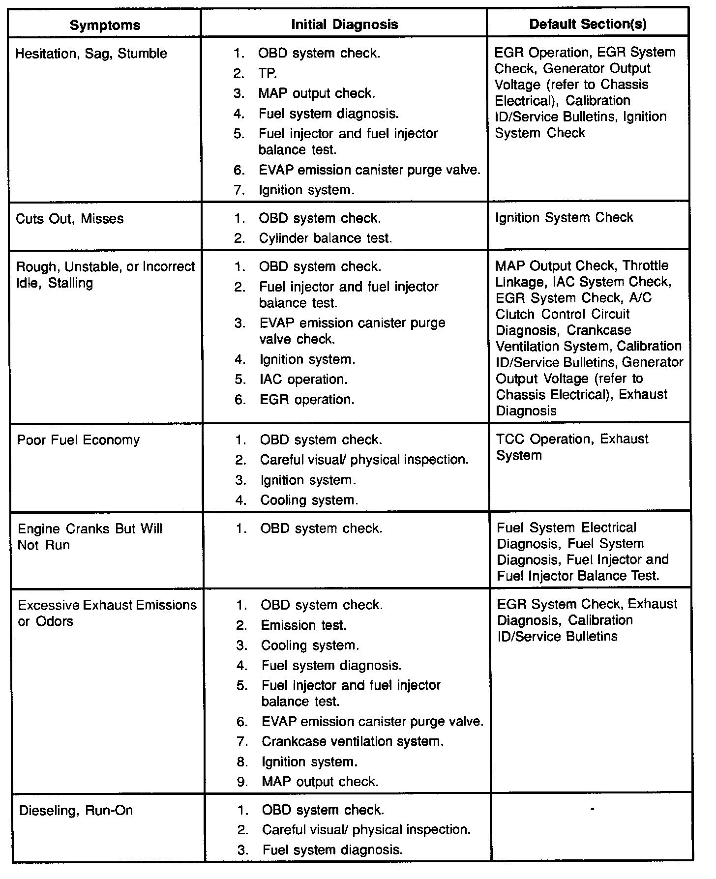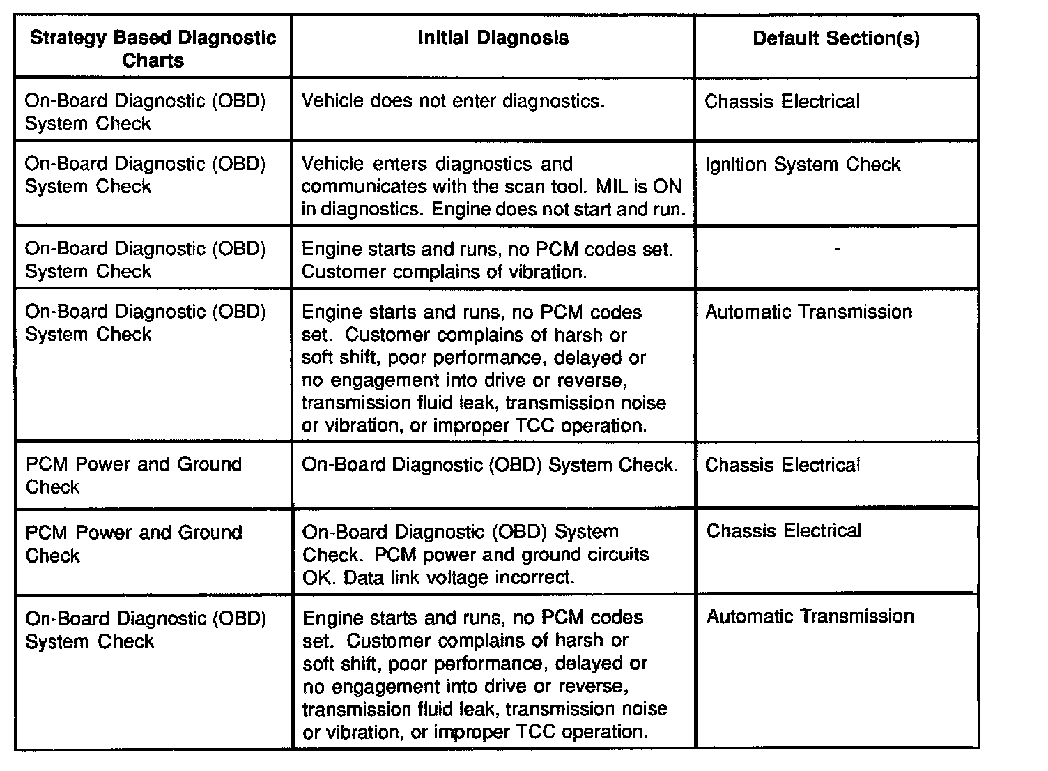 A referral strategy has been established to assist the technician with additional information when the cause of the failure cannot be determined. If no problem is found after performing diagnostics, then refer to the default matrix table for further diagnostic information.