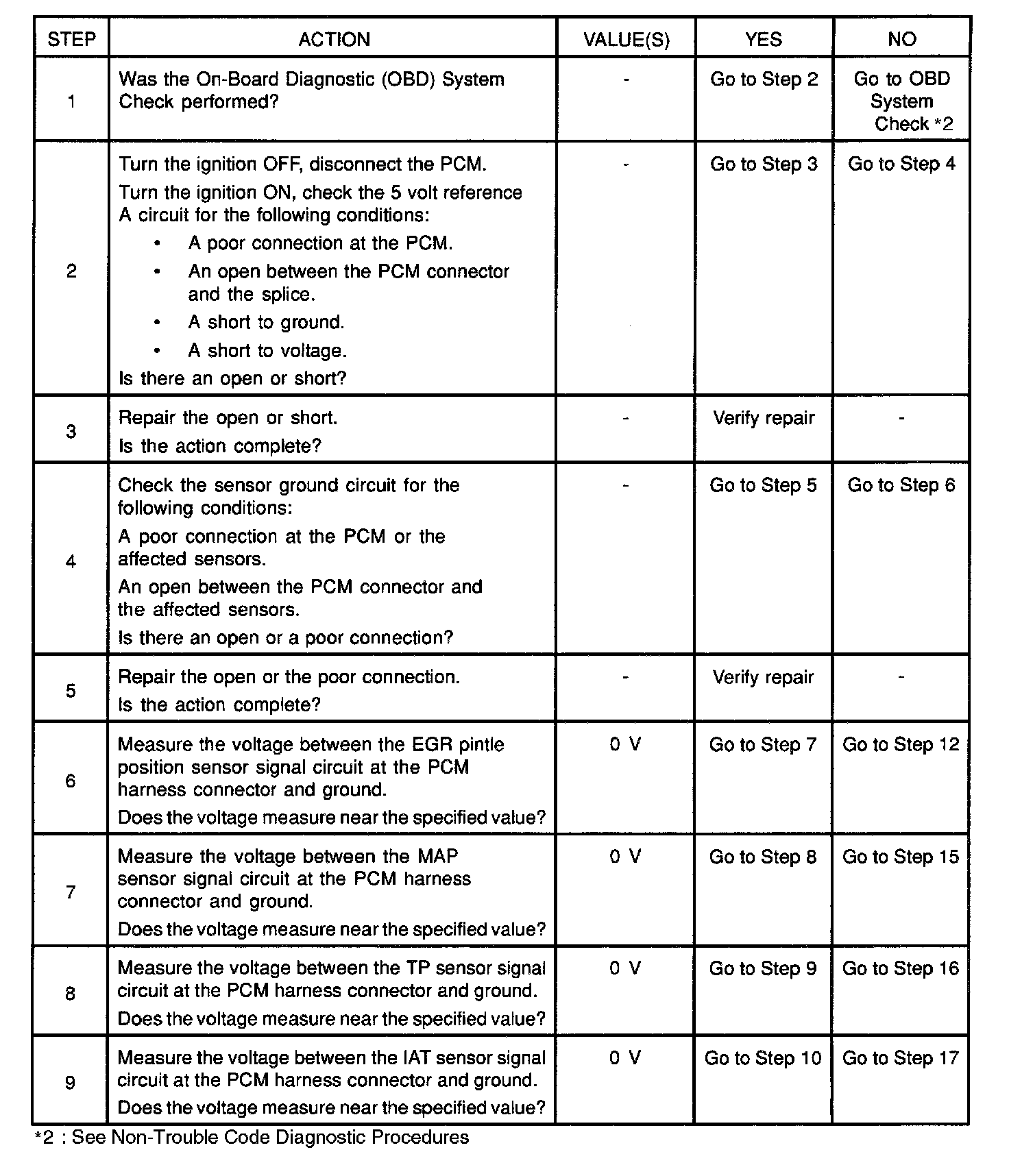 A short to ground in the 5-volt reference A or B circuit will cause one or more of the following DTCs to be set: