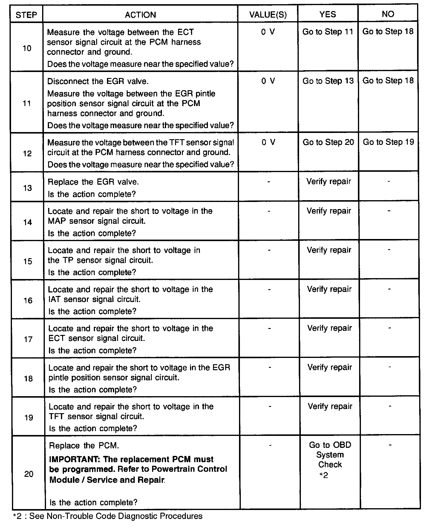 IMPORTANT: If a sensor input circuit has been shorted to voltage, ensure that the sensor is not damaged. A damaged sensor will continue to indicate a high or low voltage after the affected circuit has been repaired. If the sensor has been damaged, replace it.