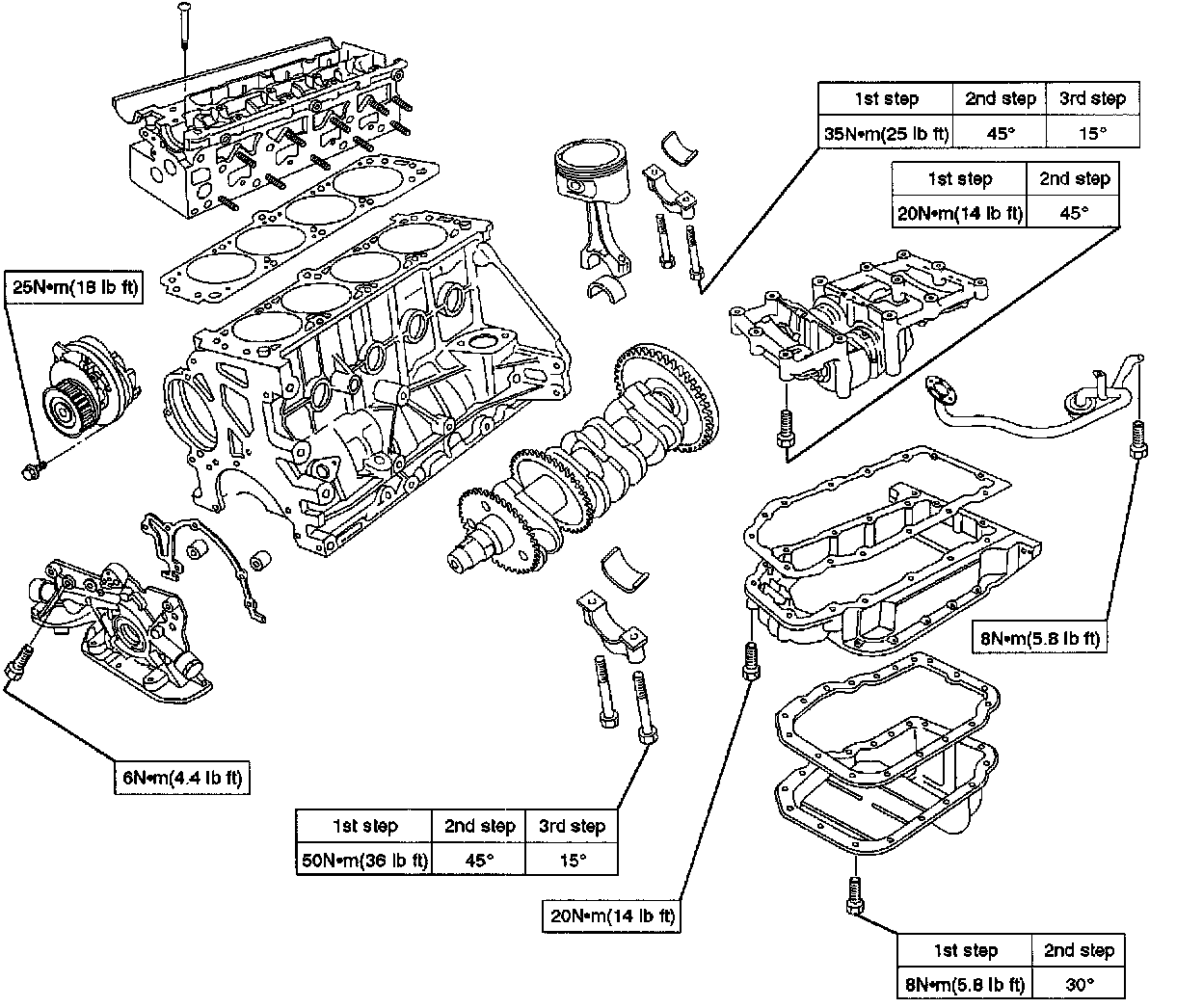 Crankshaft main bearing, Oil pan support, Oil pan, Balance unit assembly, Connecting rod Cap, Oil pump, Oil strainer