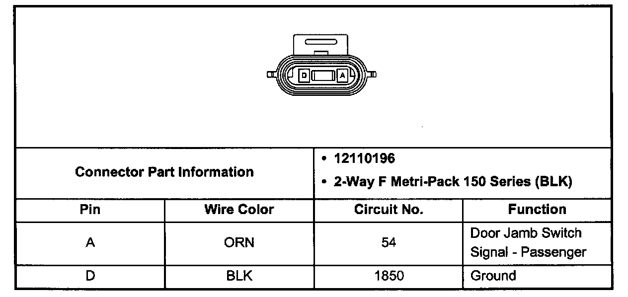 Door Handle Switch, RH Connector: