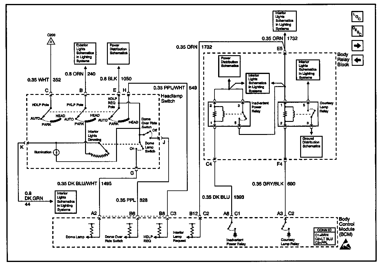 Headlamp Switch, Inadvertent Power Relay and Courtesy Lamp Relay: