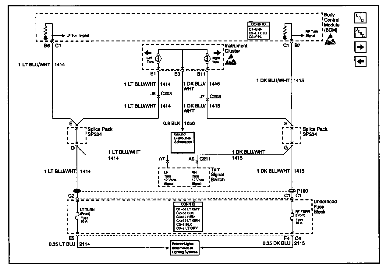LT TURN, RT TURN Fuses and Instrument Cluster:
