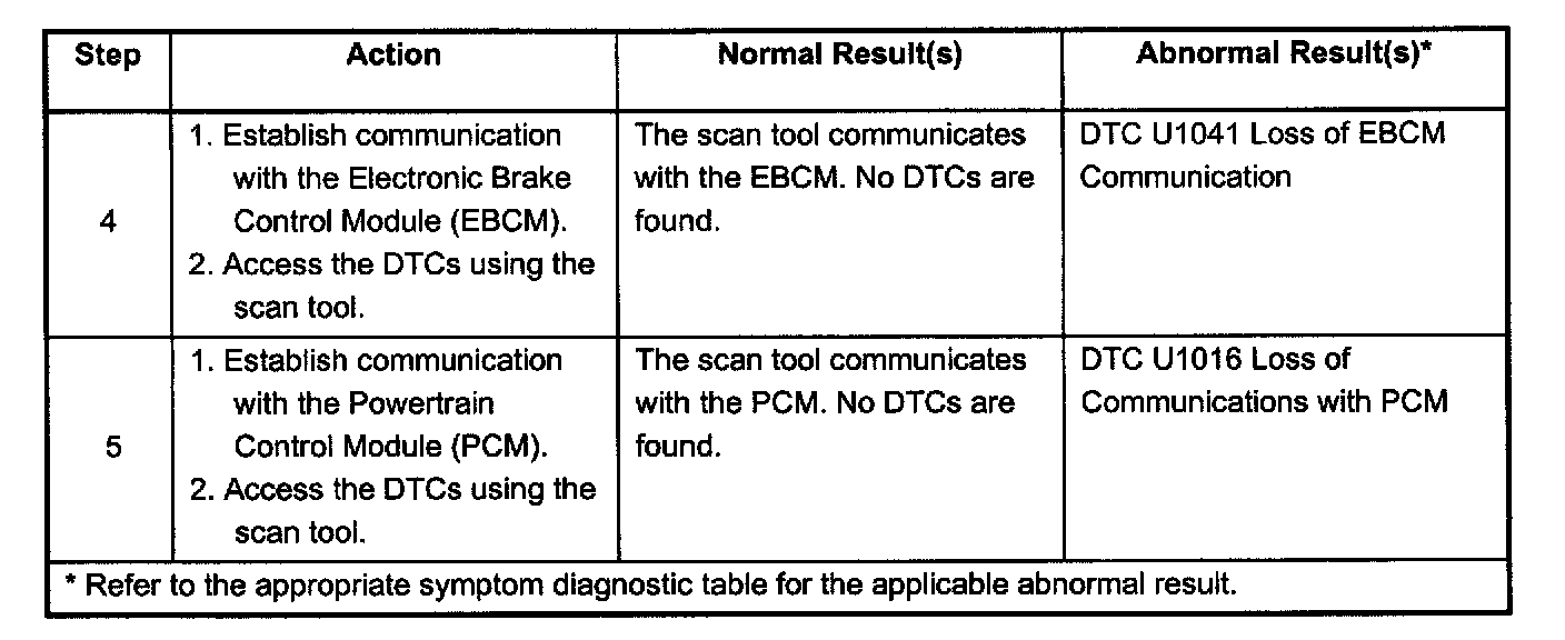 4. This step determines if the Serial Data communication between the EBCM and the scan tool can be accomplished.