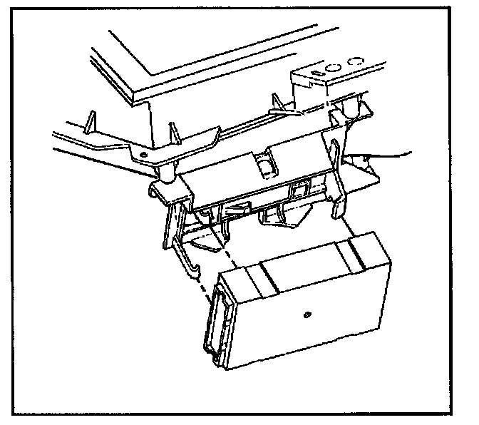 1. Install the body control module to the bracket at an angle under the wide hook retainer, with the label facing away from the bracket.