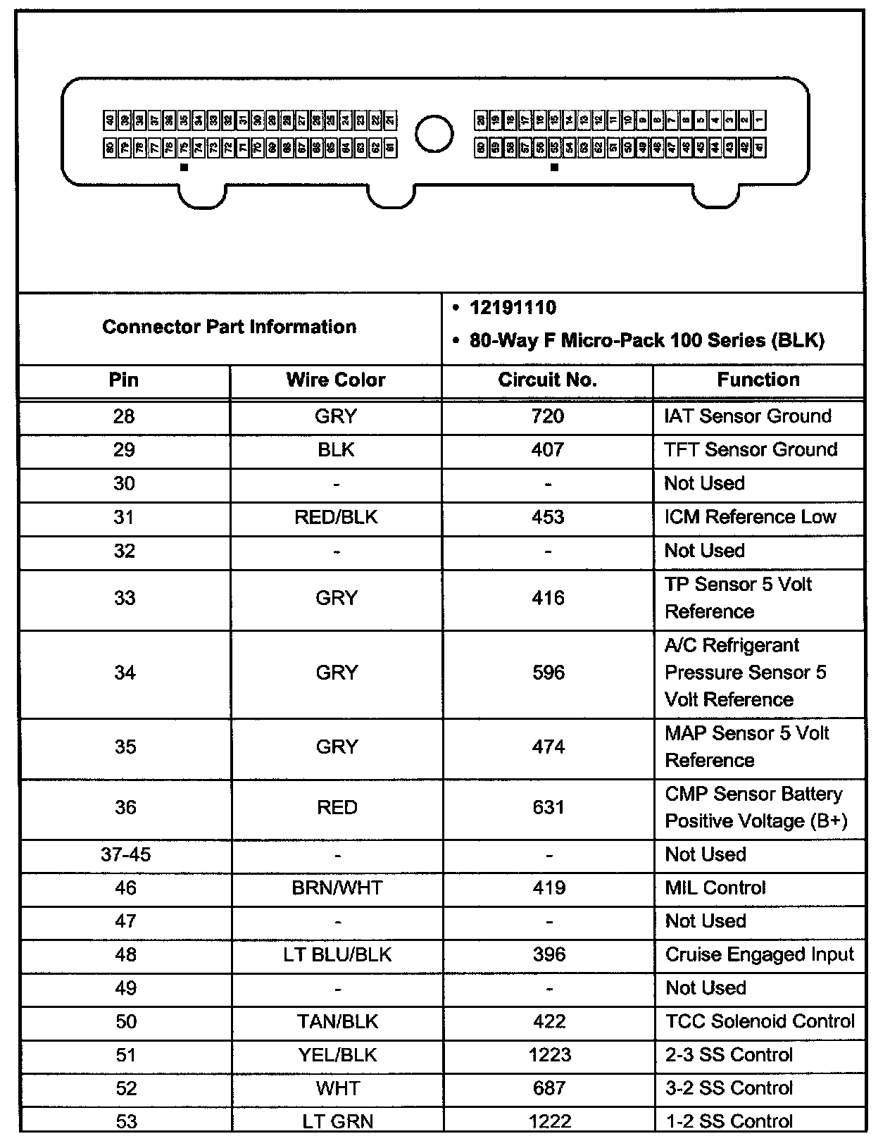 Powertrain Control Module (PCM) Connector C2 (Pin 28 - 53):