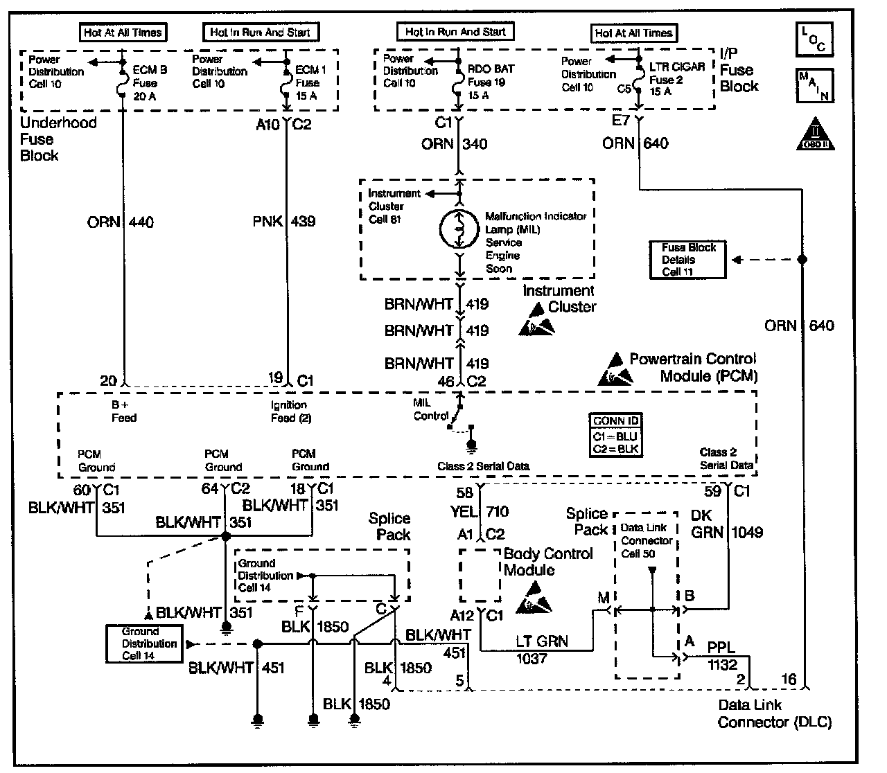 Battery power and ground is supplied for the scan tool through the DLC. The Class 2 serial data circuit to the DLC allows the PCM to communicate with the scan tool. The Class 2 serial data circuit is also used to communicate with the electronic brake control module (EBCM), and the truck body control module.