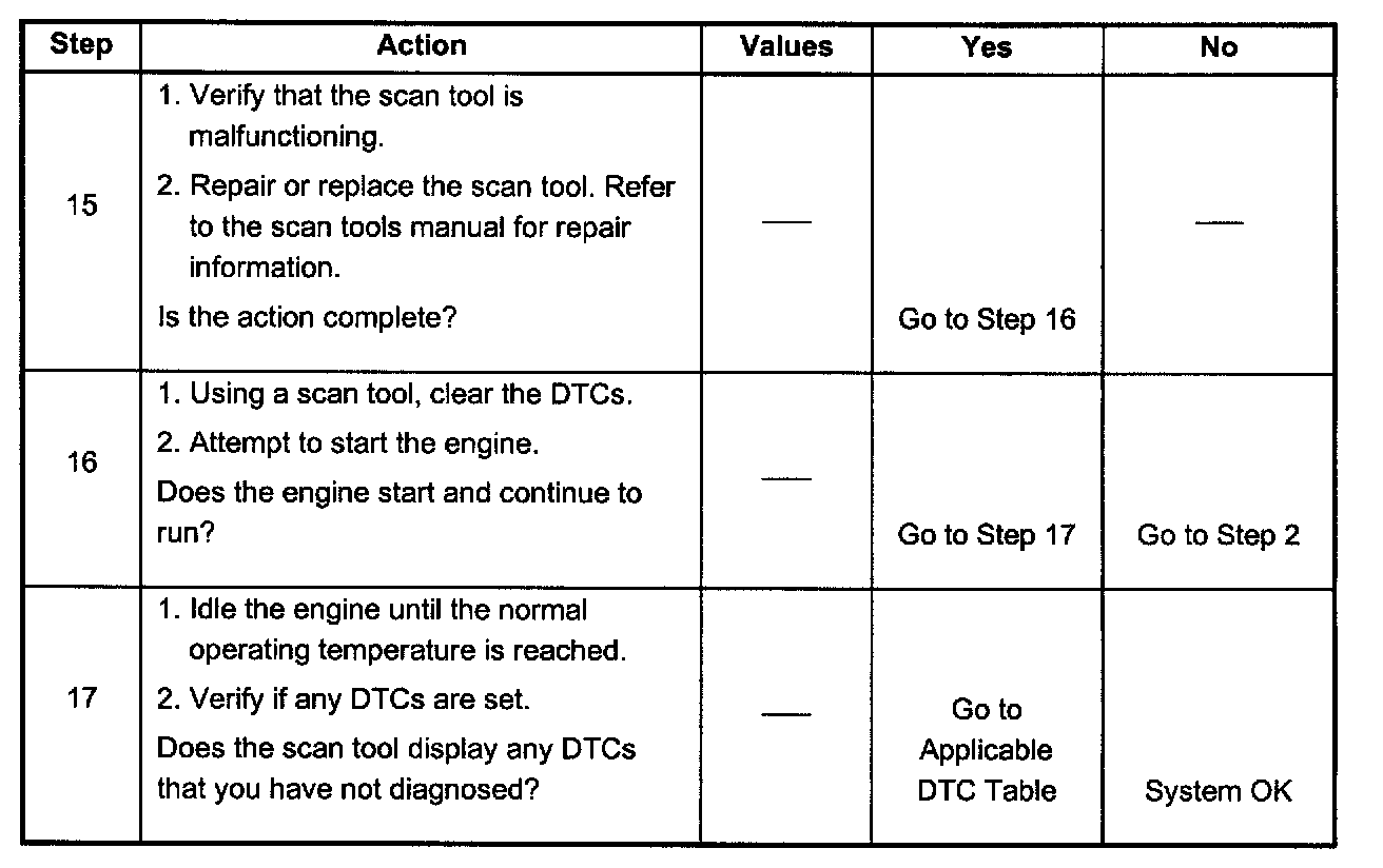 15. The scan tool or the associated cables could be malfunctioning. Refer to the scan tool manual for repair information.