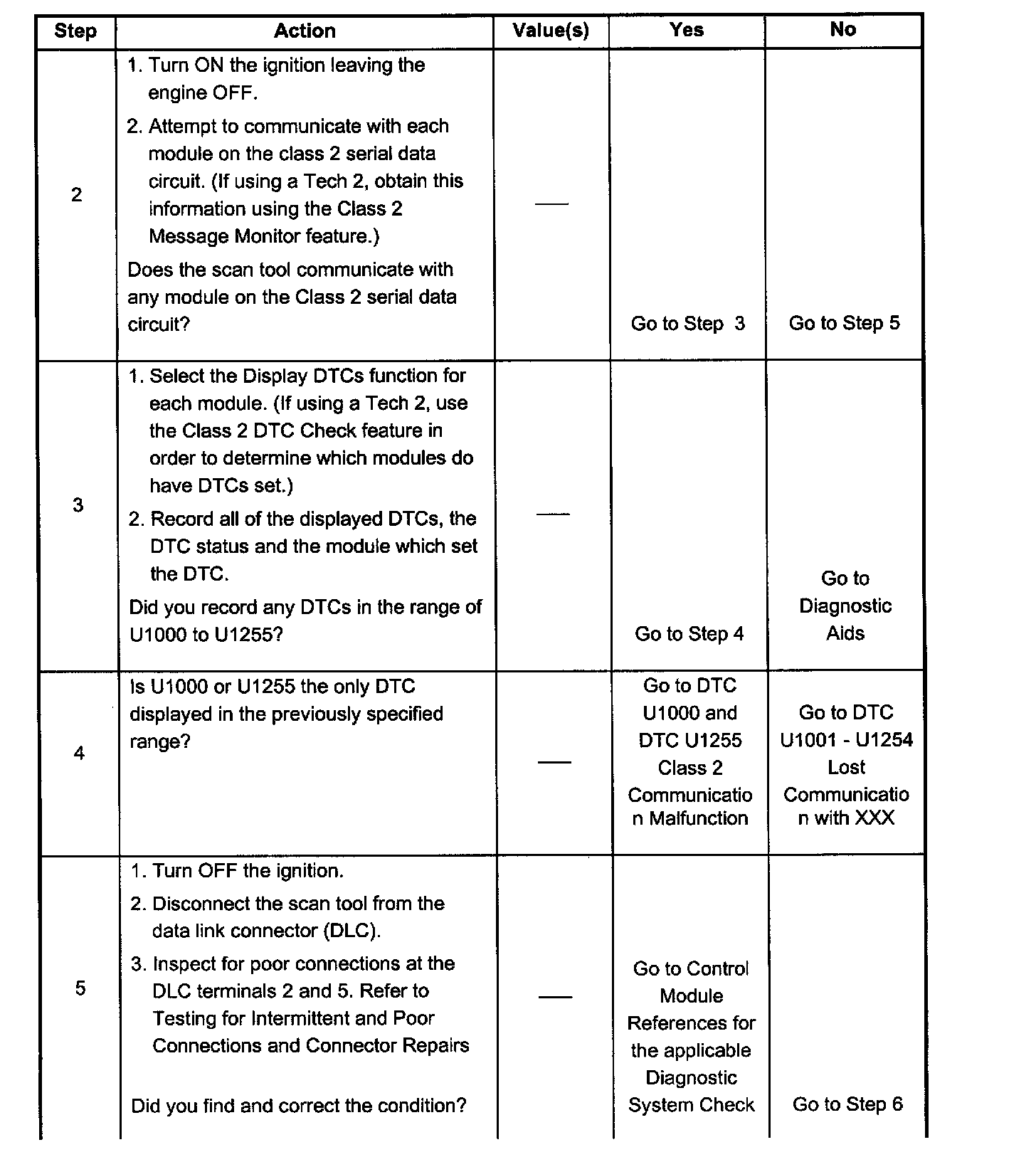 - When the class 2 serial data circuit is shorted to B+, DTC U1301 will be set. Refer to DTC U1301 Class 2 Data Link High.