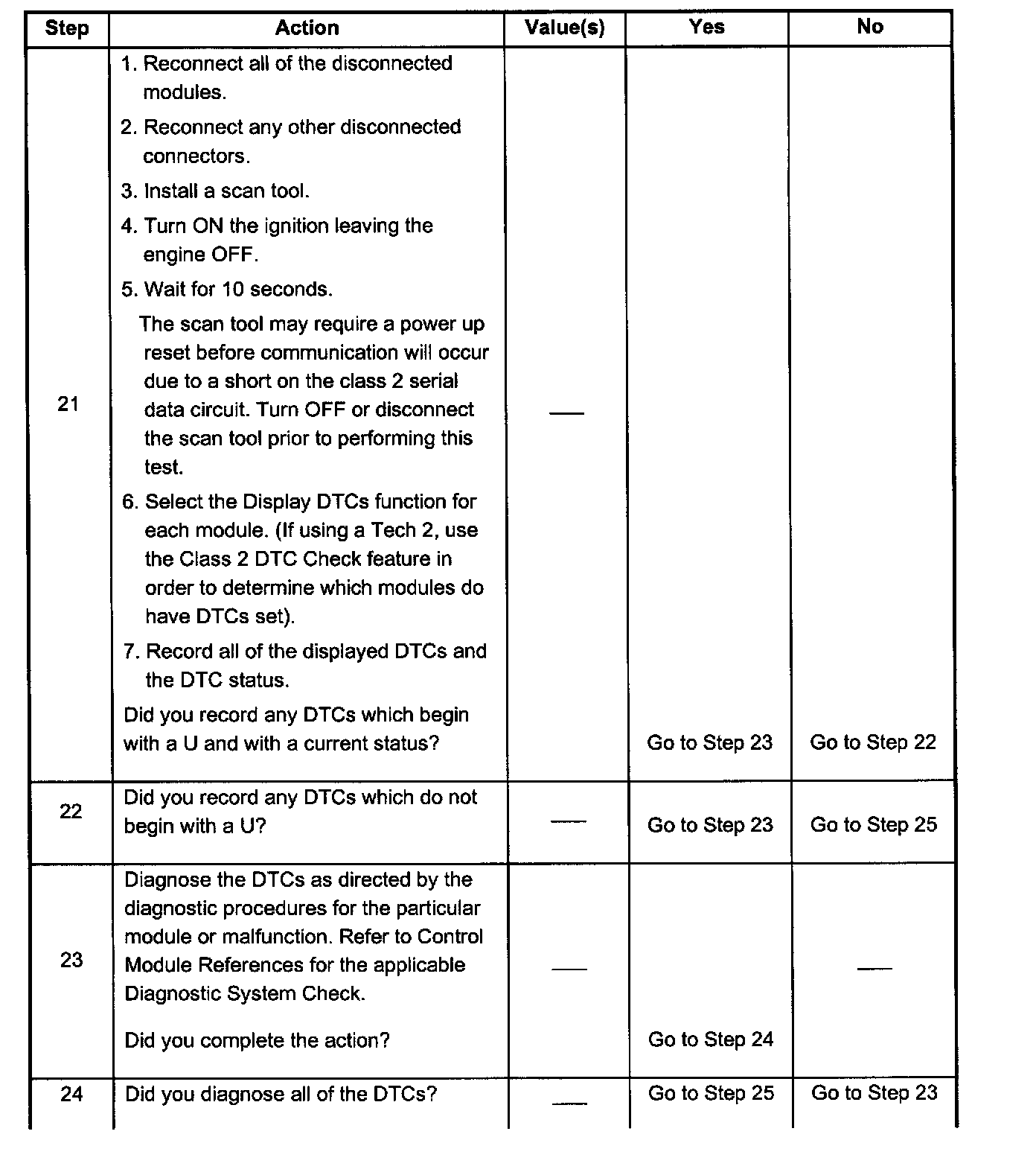 21. If there are no current DTCs that begin with a U, the communication malfunction has been repaired.