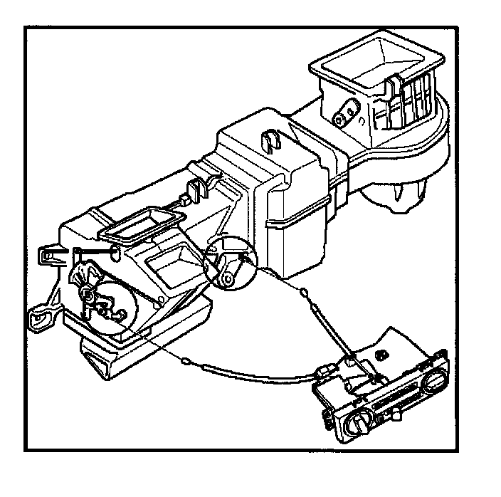 2. Connect the control cable at the "CIRC" position of the link unit of the blower assembly and secure it with the clip.