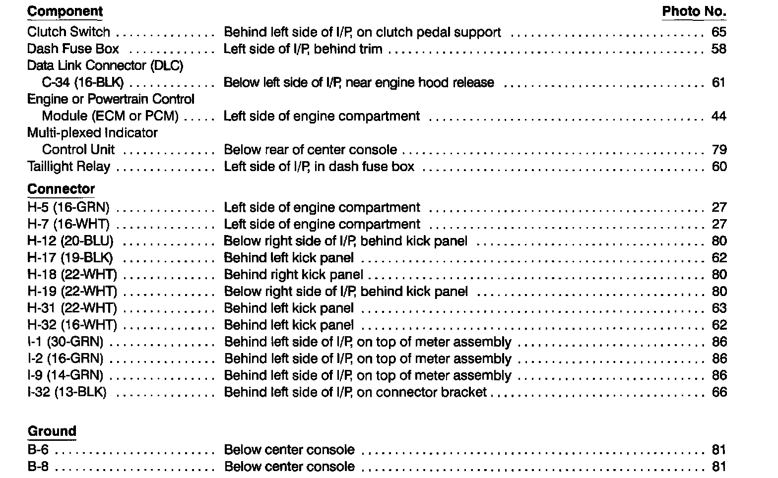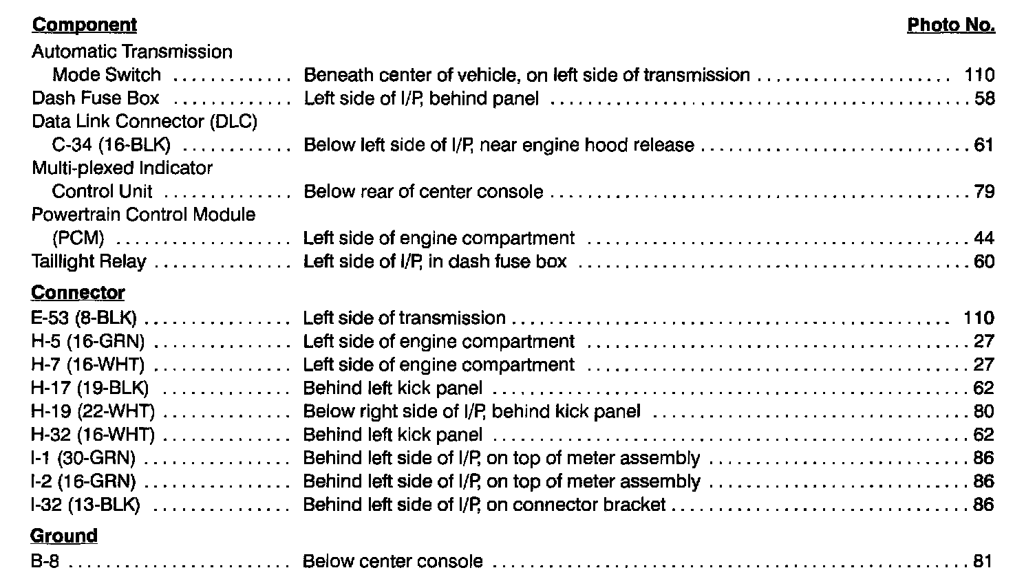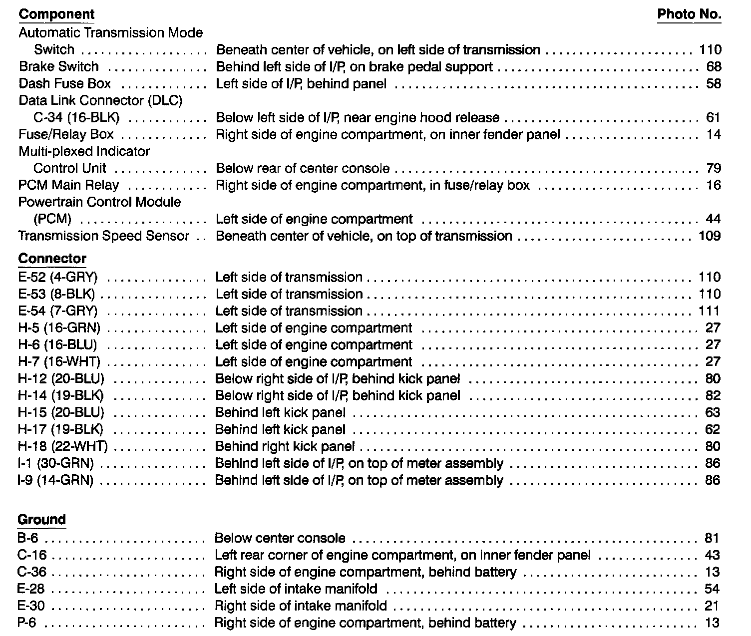 Component Location Index photographs can be found at Component Locations.