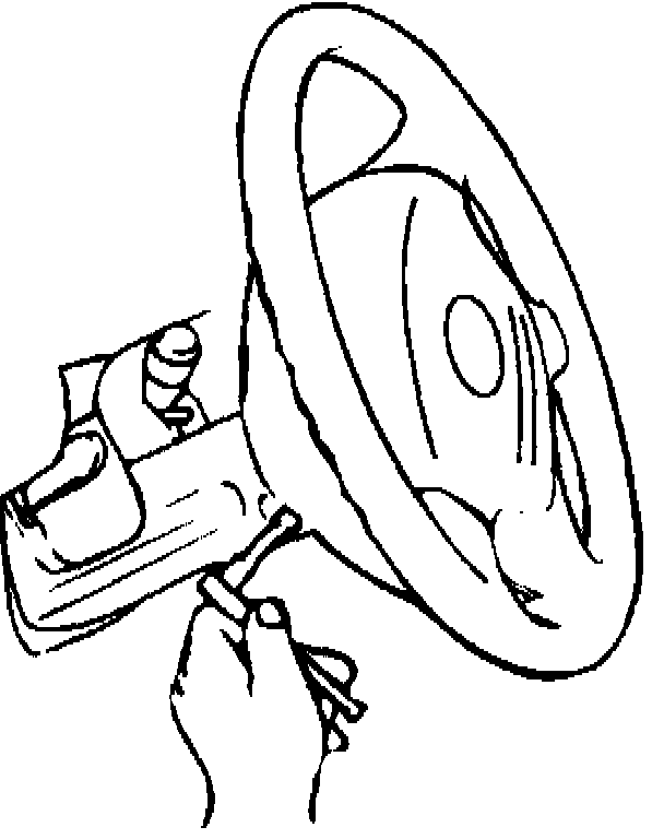CAUTION: Never apply force to the steering wheel in direction of the shaft by using a hammer or other impact tools in an attempt to remove the steering wheel. The steering shaft is designed as an energy absorbing unit.