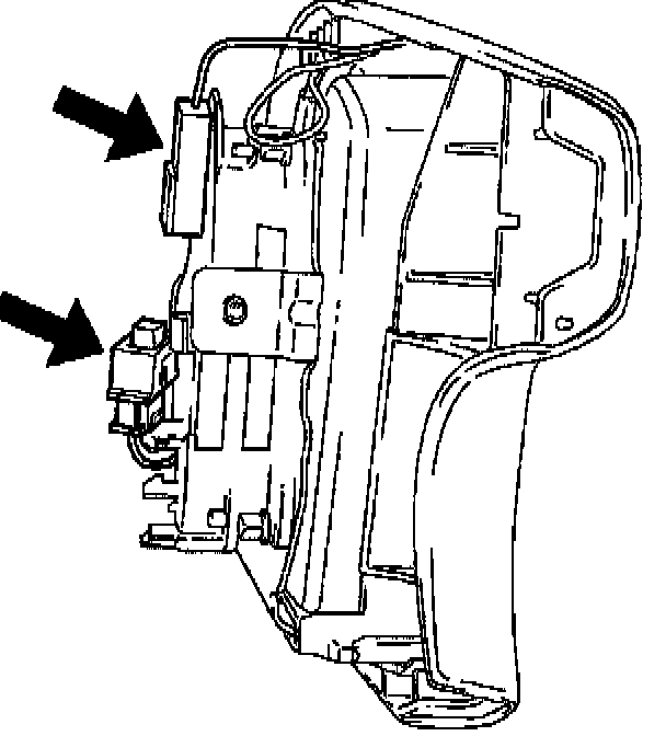 8. Disconnect the yellow 2-way SRS connector and horn lead located behind the inflator module.