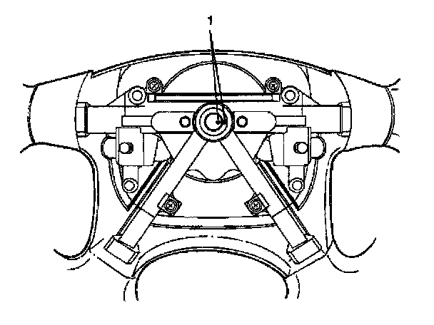 9. Apply a setting mark (1) across the steering wheel and shaft so parts can be reassembled in their original position.