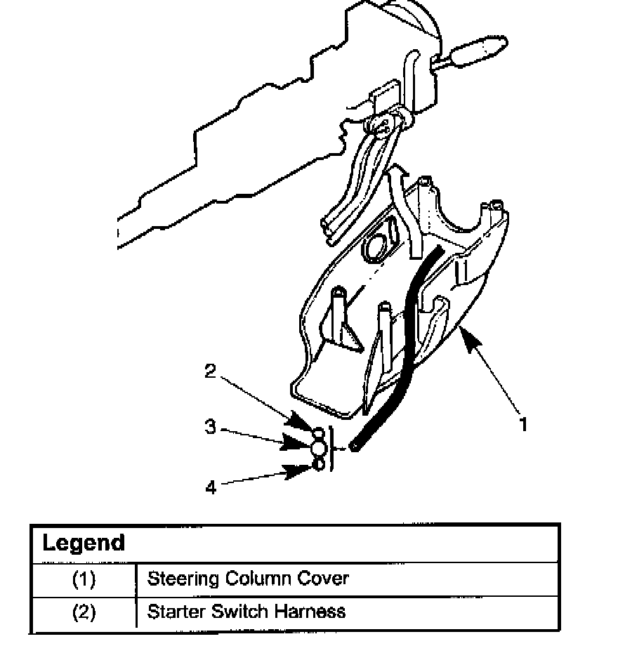 17. Disconnect the starter switch harness connector located under the steering column, then remove lock cylinder assembly.