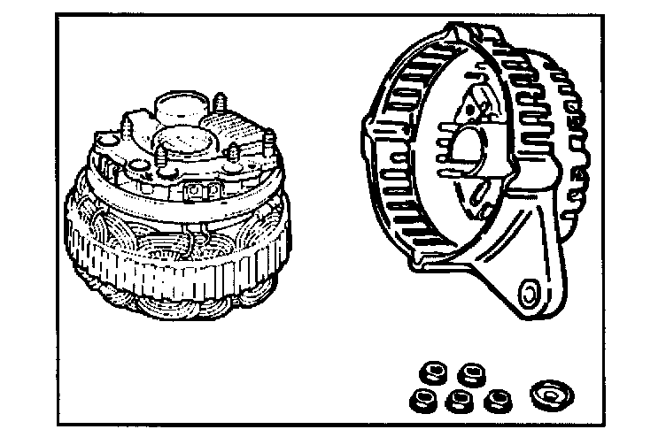 9. Remove bolts which secure stator terminal to rectifier terminal, and remove stator.