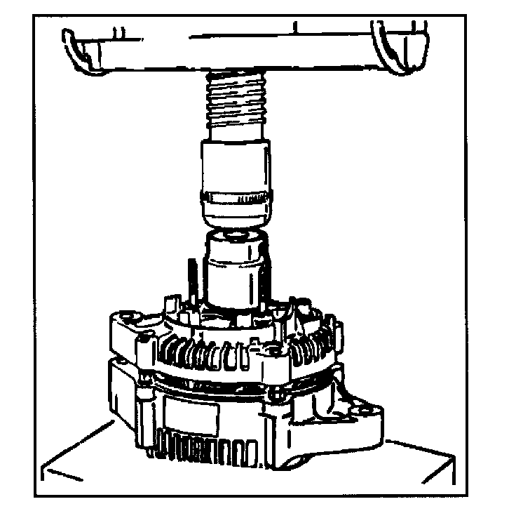 1. Using a press with a socket wrench attached, reassemble rotor and rear end cover assembly in the front cover.