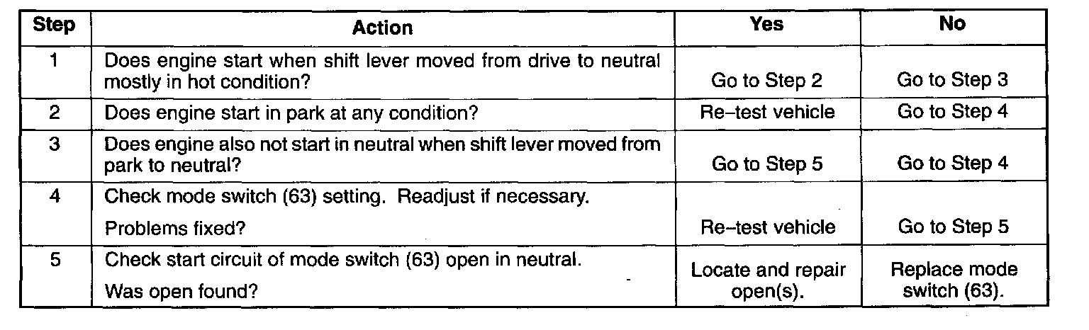CHART 1: NO ENGINE START IN NEUTRAL OR PARK
