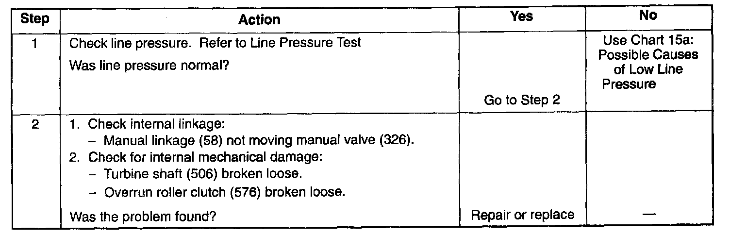 CHART 15A: POSSIBLE CAUSES OF LOW LINE PRESSURE