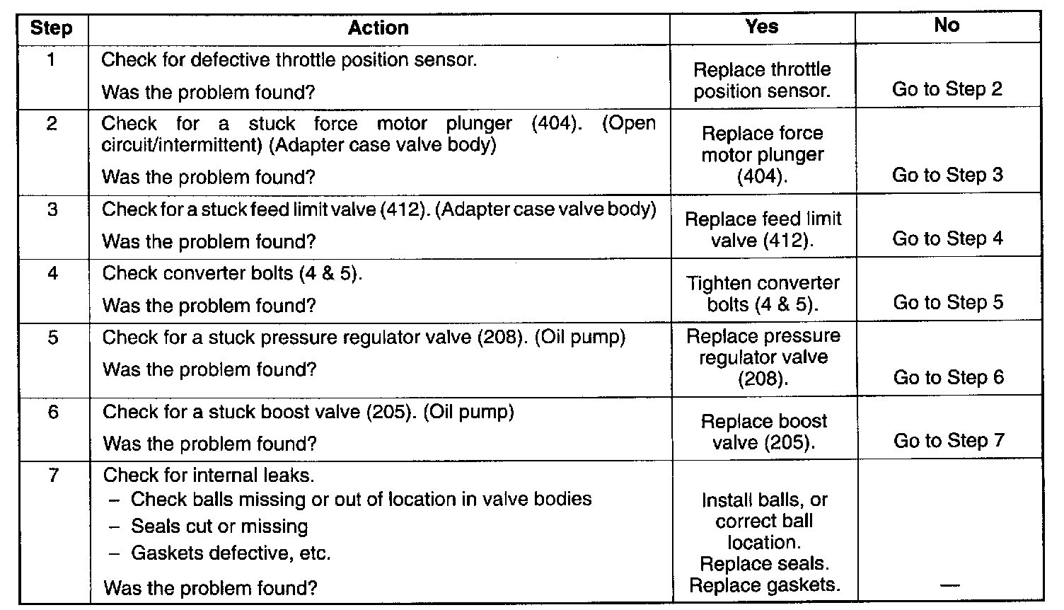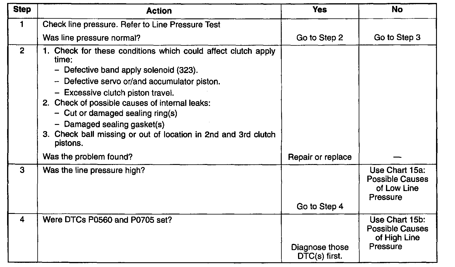 MECHANICAL/HYDRAULIC DIAGNOSIS CHECK TRANS INDICATOR CHARTPERFORM PRELIMINARY INSPECTION FIRST!