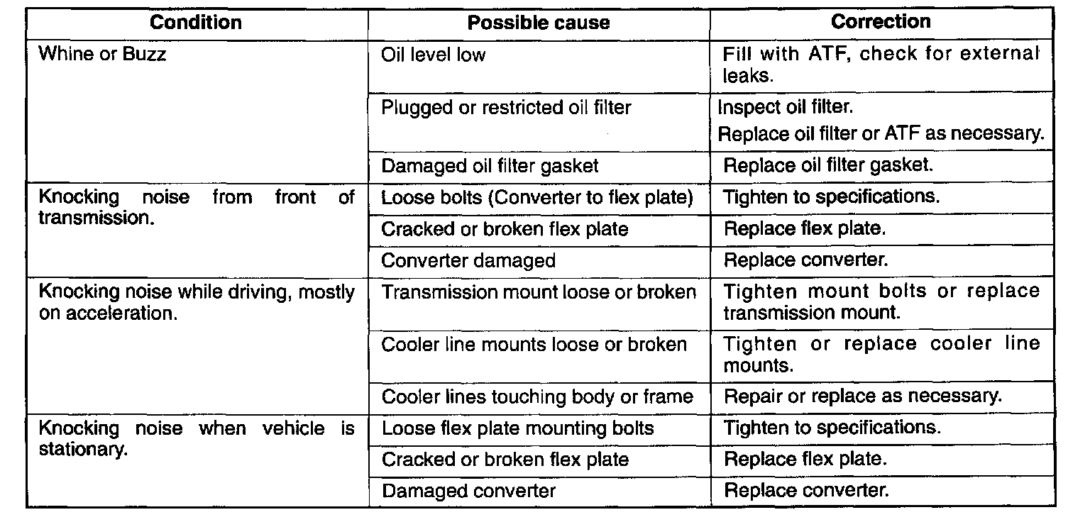 CAUTION: Before checking transmission for what is believed to be transmission noise, ensure presence and positioning of insulating plugs, pads etc. Also make sure that noise does not come from other drivetrain components.