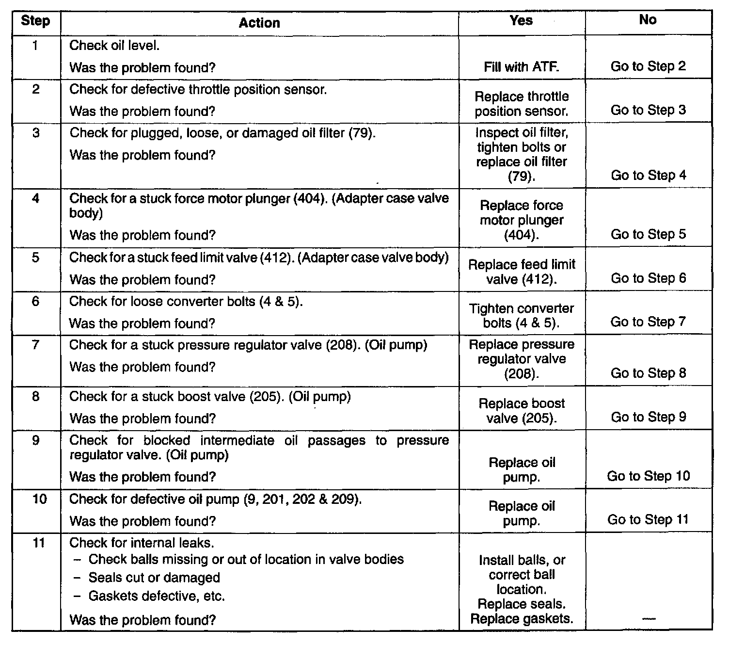NOTE: If transmission is operating in backup mode, high line pressure will be present.