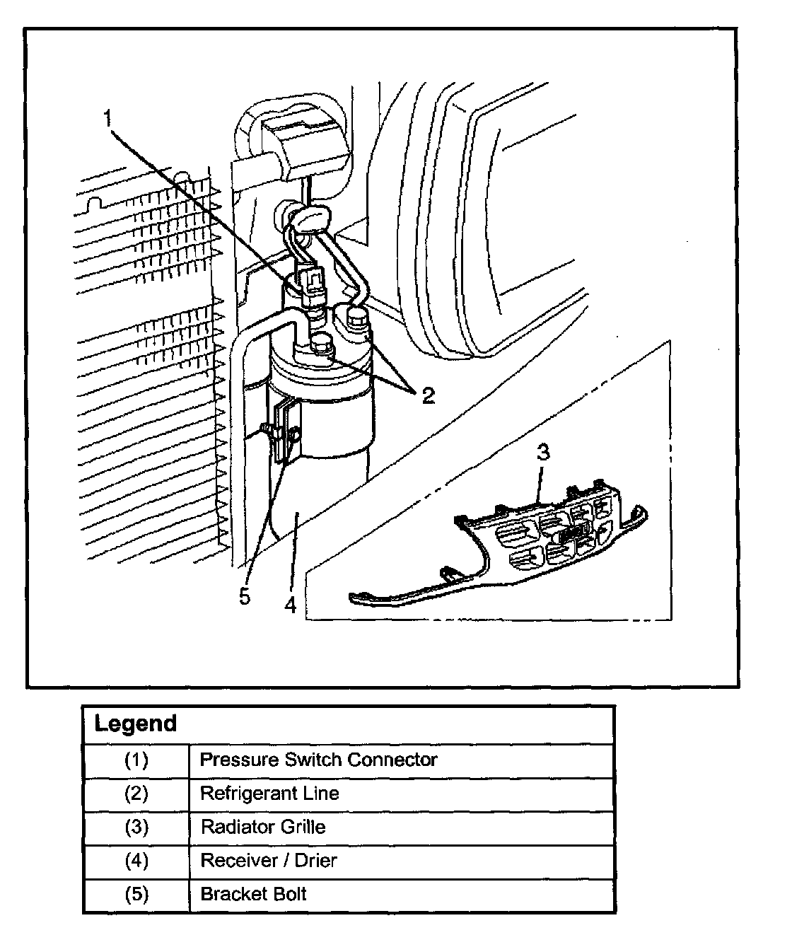 - Loosen the bolt, then, using care not to touch or bend the refrigerant line, carefully pull out the receiver/drier.