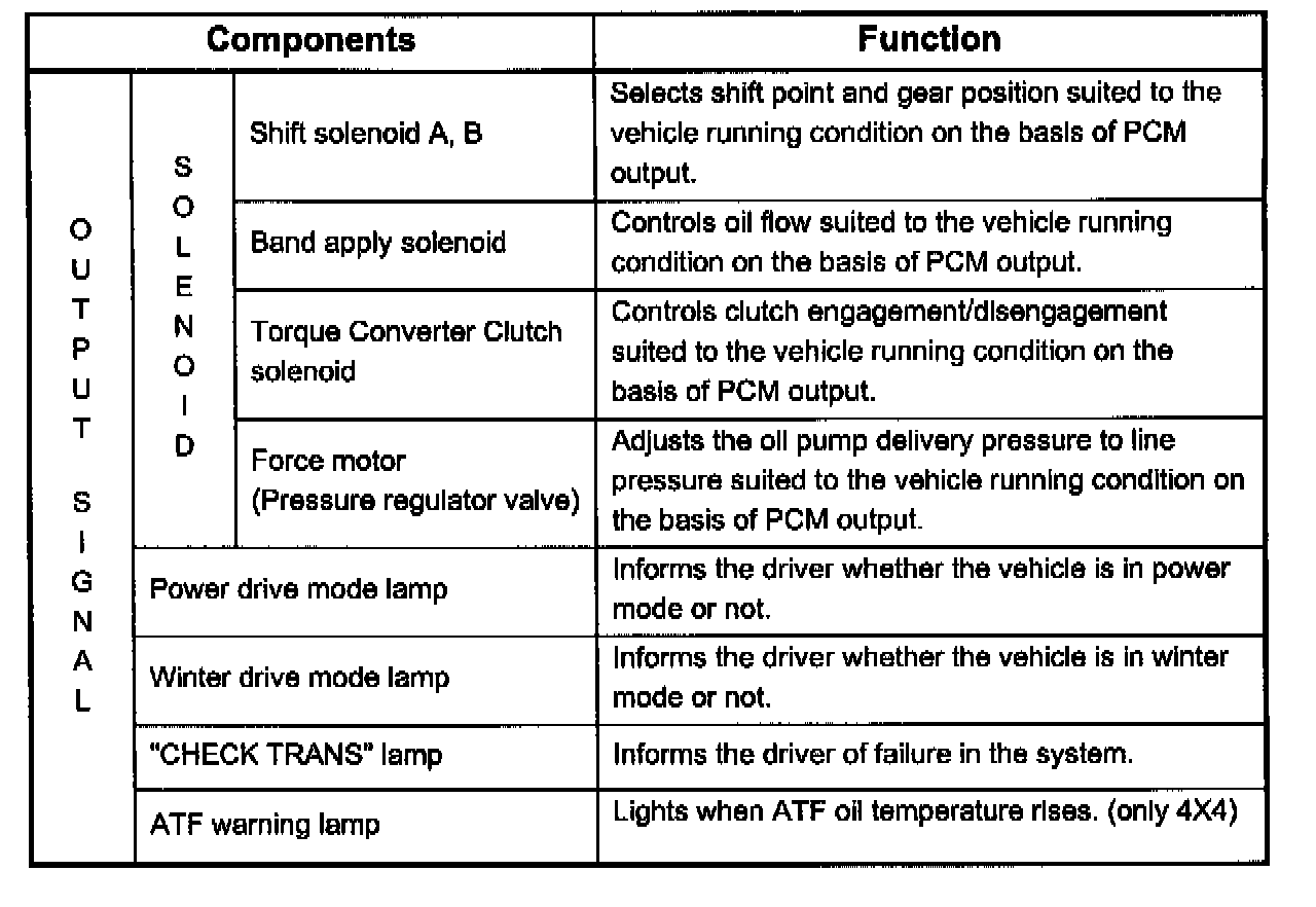 - Electronic control maintains the optimum hydraulic pressure for clutch, band brake as well as transmission so that shift feeling is improved.