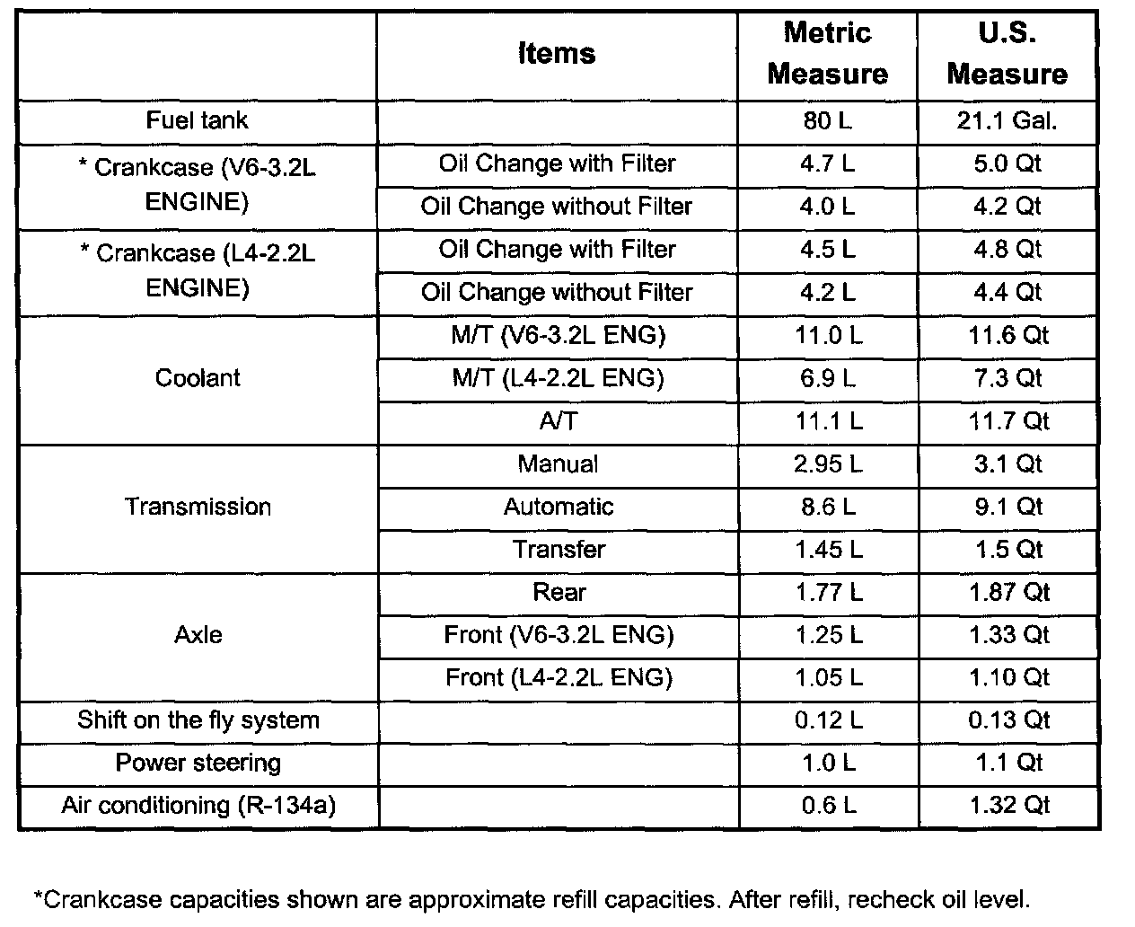 General Capacity Specifications