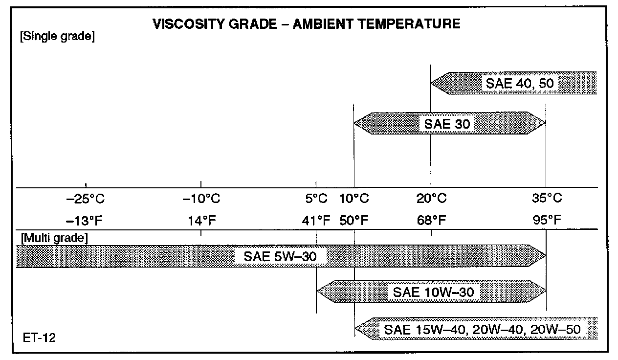 Oil Viscosity Chart For Manual Transmission And Transfer Case (Except T5 Type):