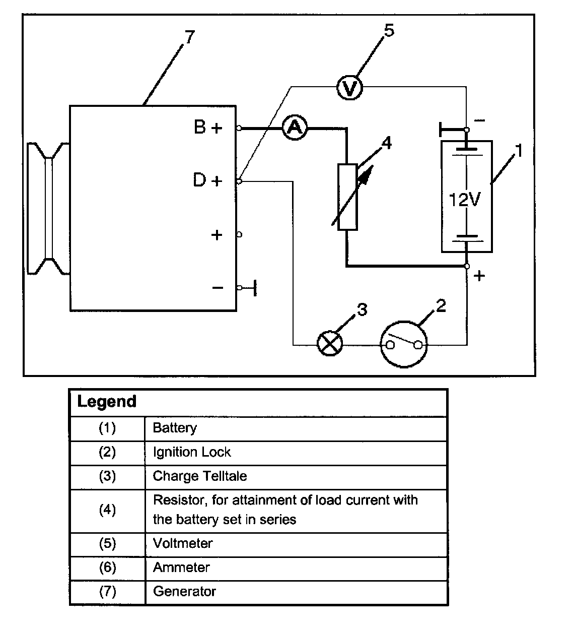 4. If the required minimum current intensity is not attained, or if the oscilloscope picture shows variations, the alternator should be overhauled.