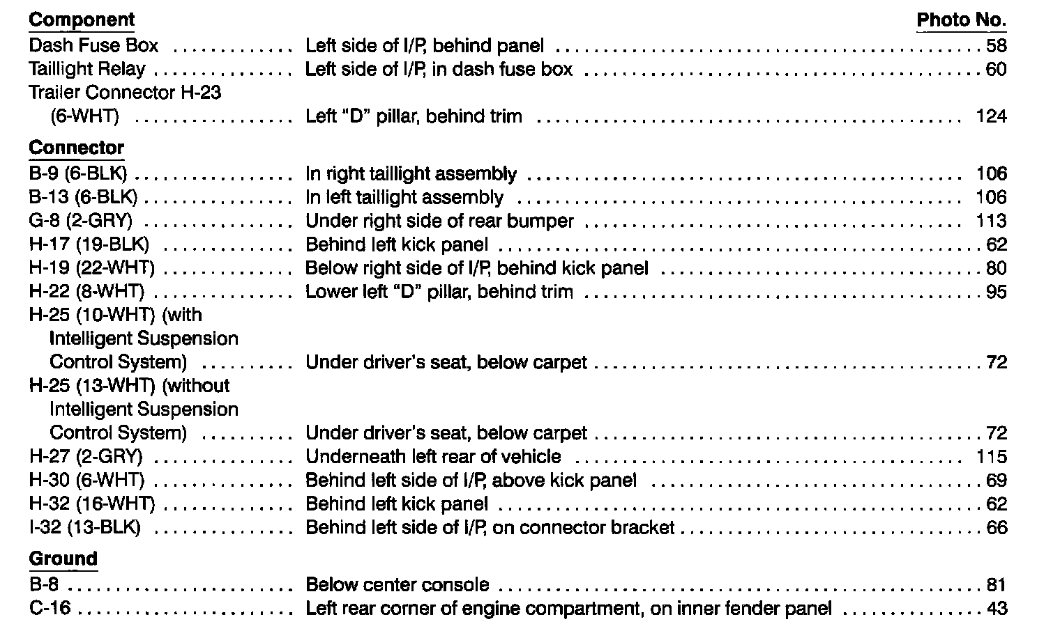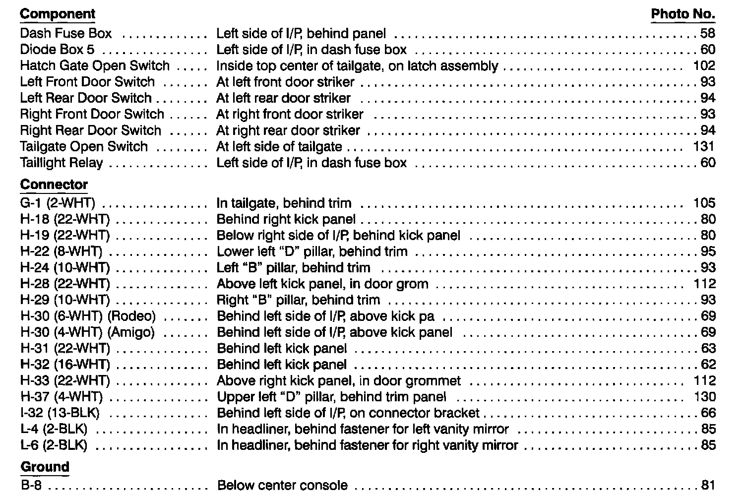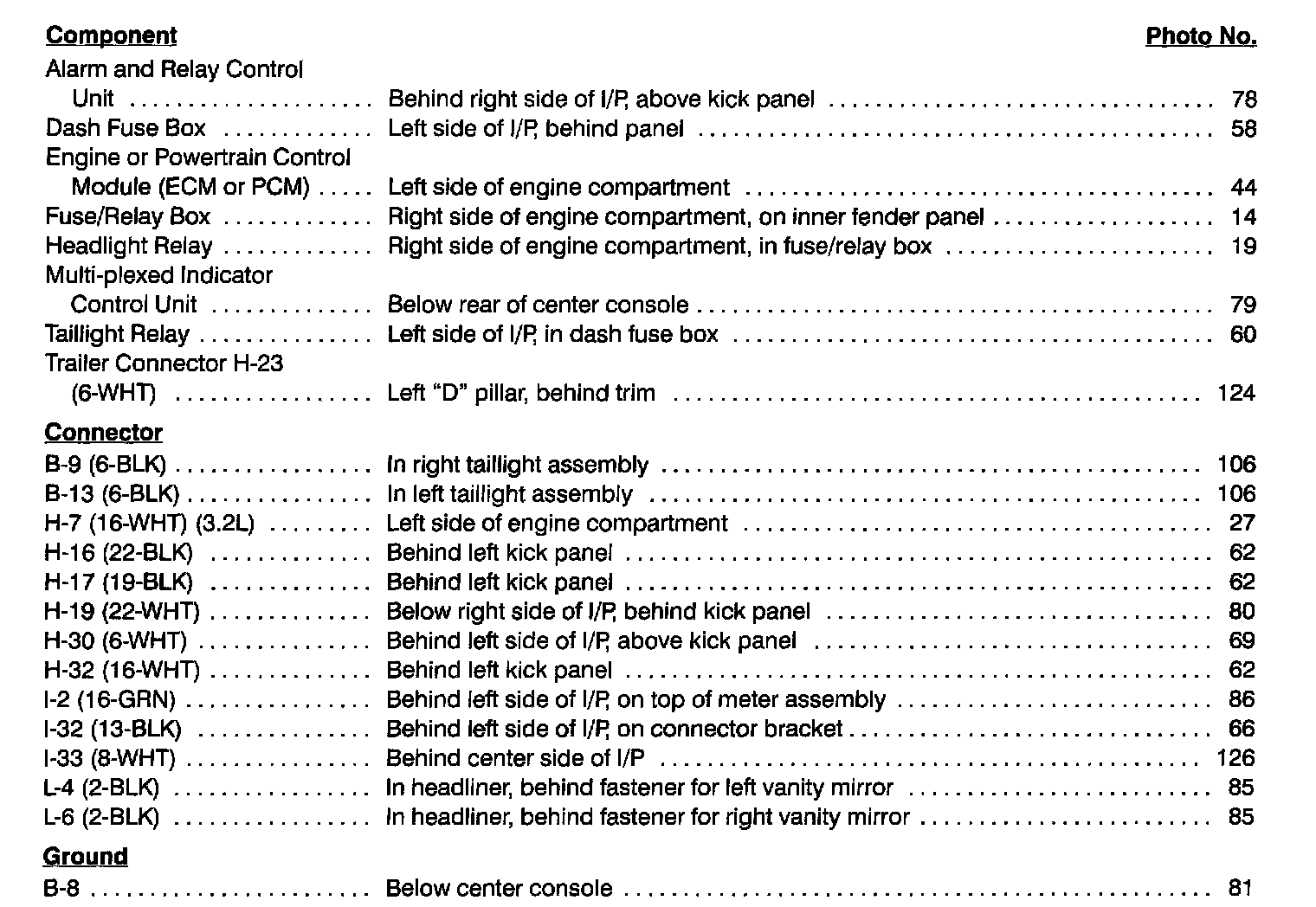 Dash & Console Lights Index:
