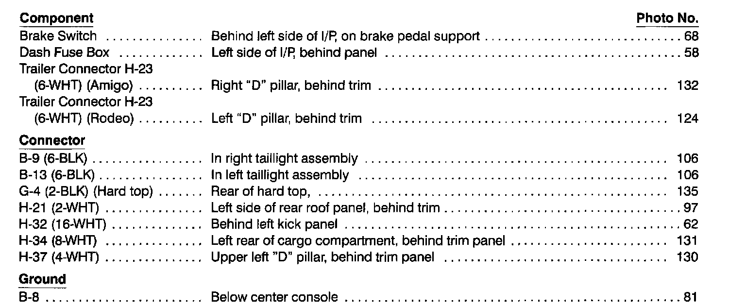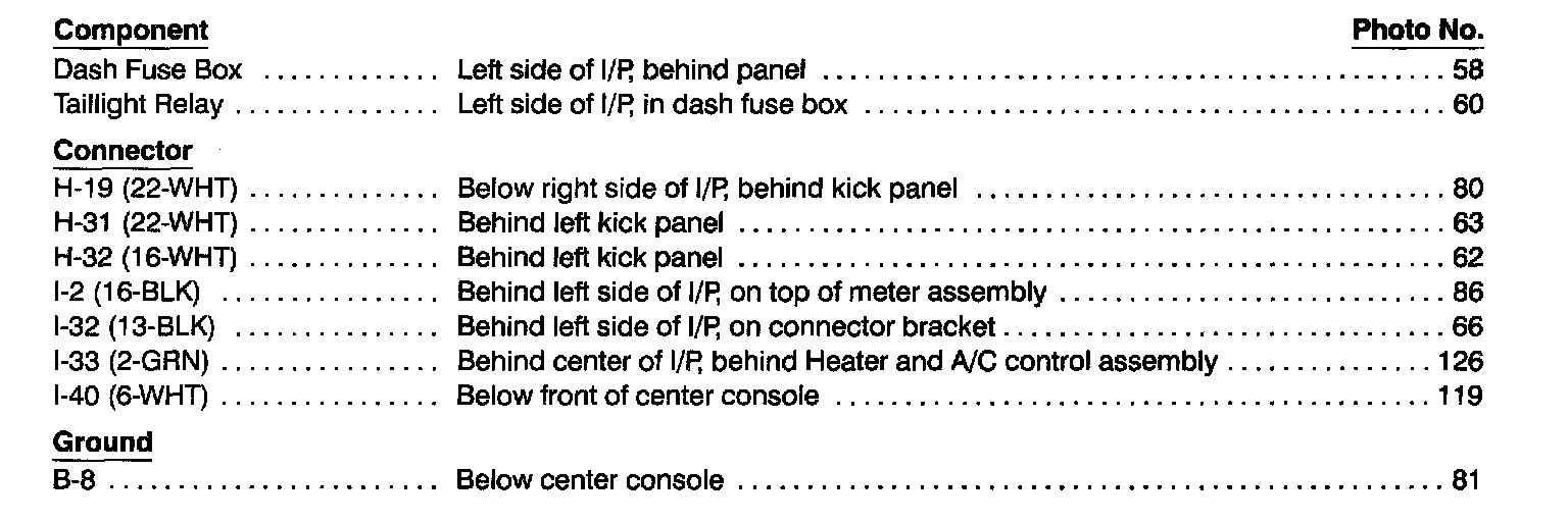 Park, Tail & License Lights Index:
