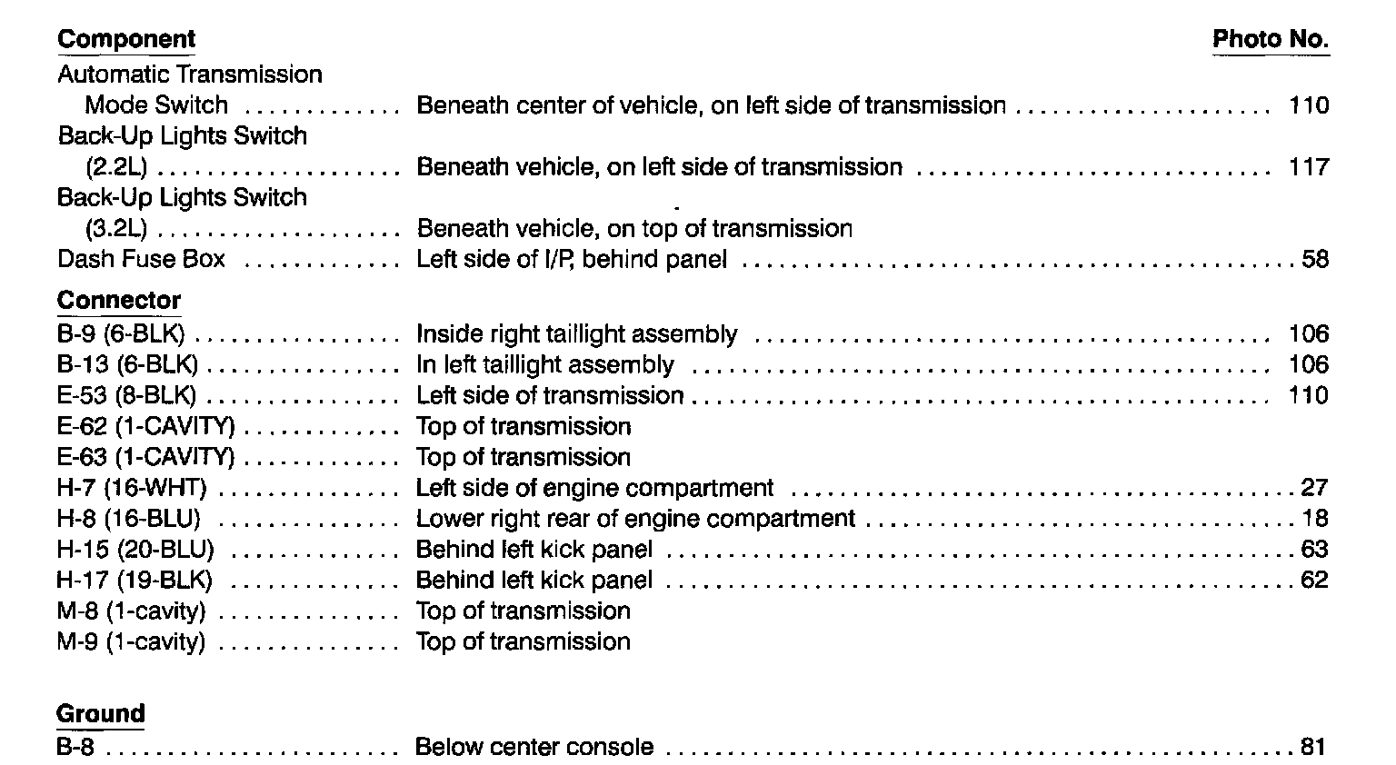 Back Up Lights Index: