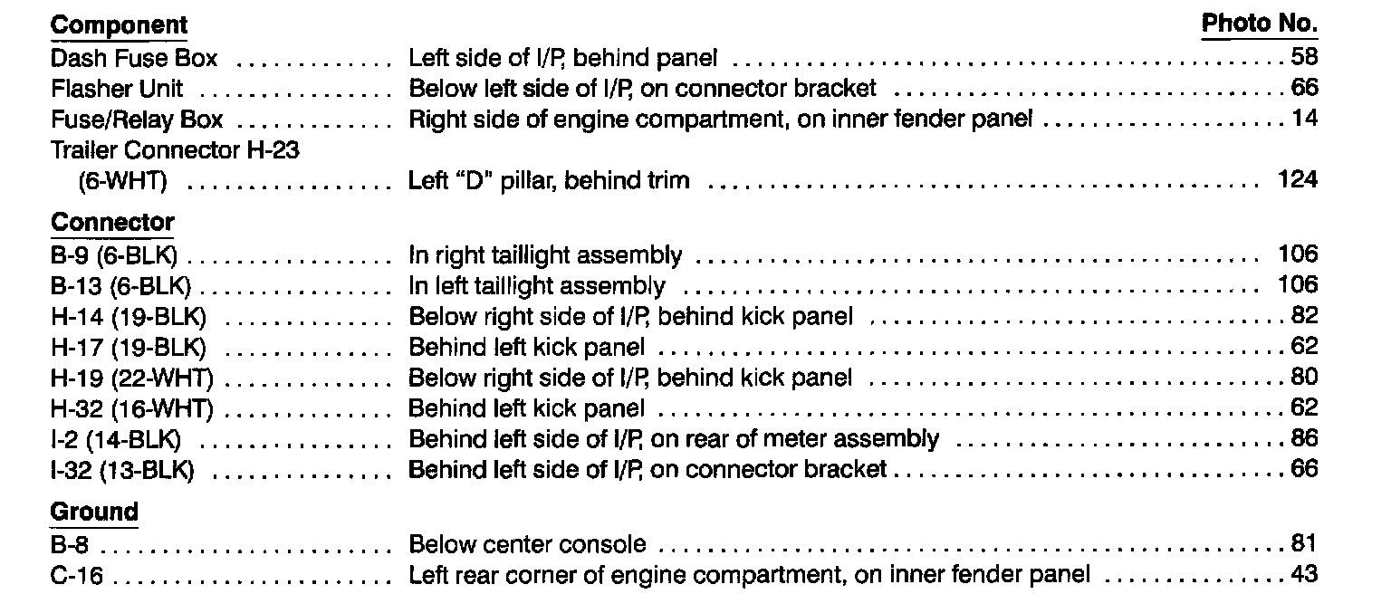 Turn & Hazard Lights Index: