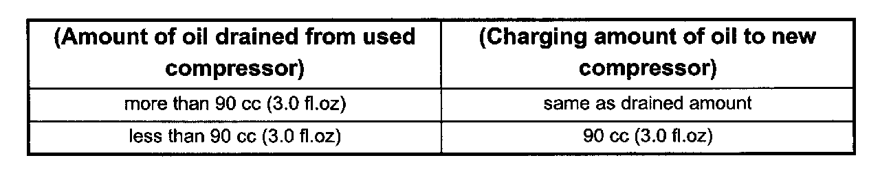 Checking and Adjusting for Compressor ReplacementThe oil is not charged in compressor (service parts). So it is necessary to charge the proper amount of oil to the new compressor.