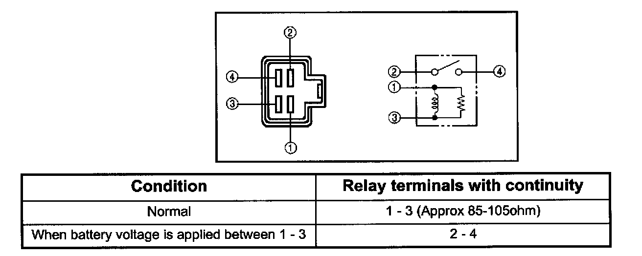 2. Check for continuity between the heater and the A/C relay (B-36) terminals.