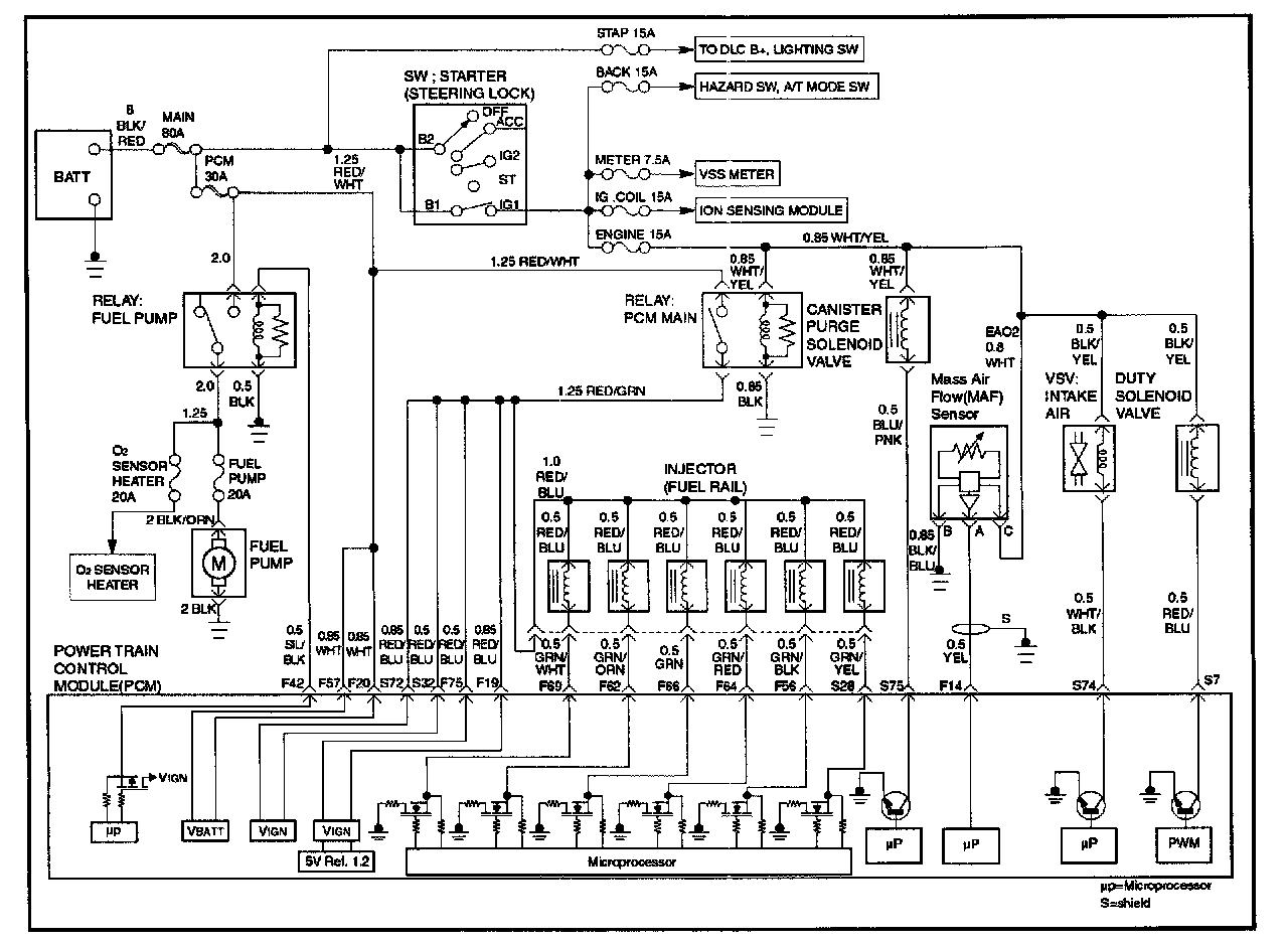 When the ignition switch is first turned "ON," the powertrain Control module (PCM) energizes the fuel pump relay which applies power to the in-tank fuel pump. The fuel pump relay will remain "ON" as long as the engine is running or cranking and the PCM is receiving 58X crankshaft position pulses. If no 58X crankshaft position pulses are present, the PCM de-energizes the fuel pump relay within 2 seconds after the ignition is turned "ON" or the engine is stopped.
