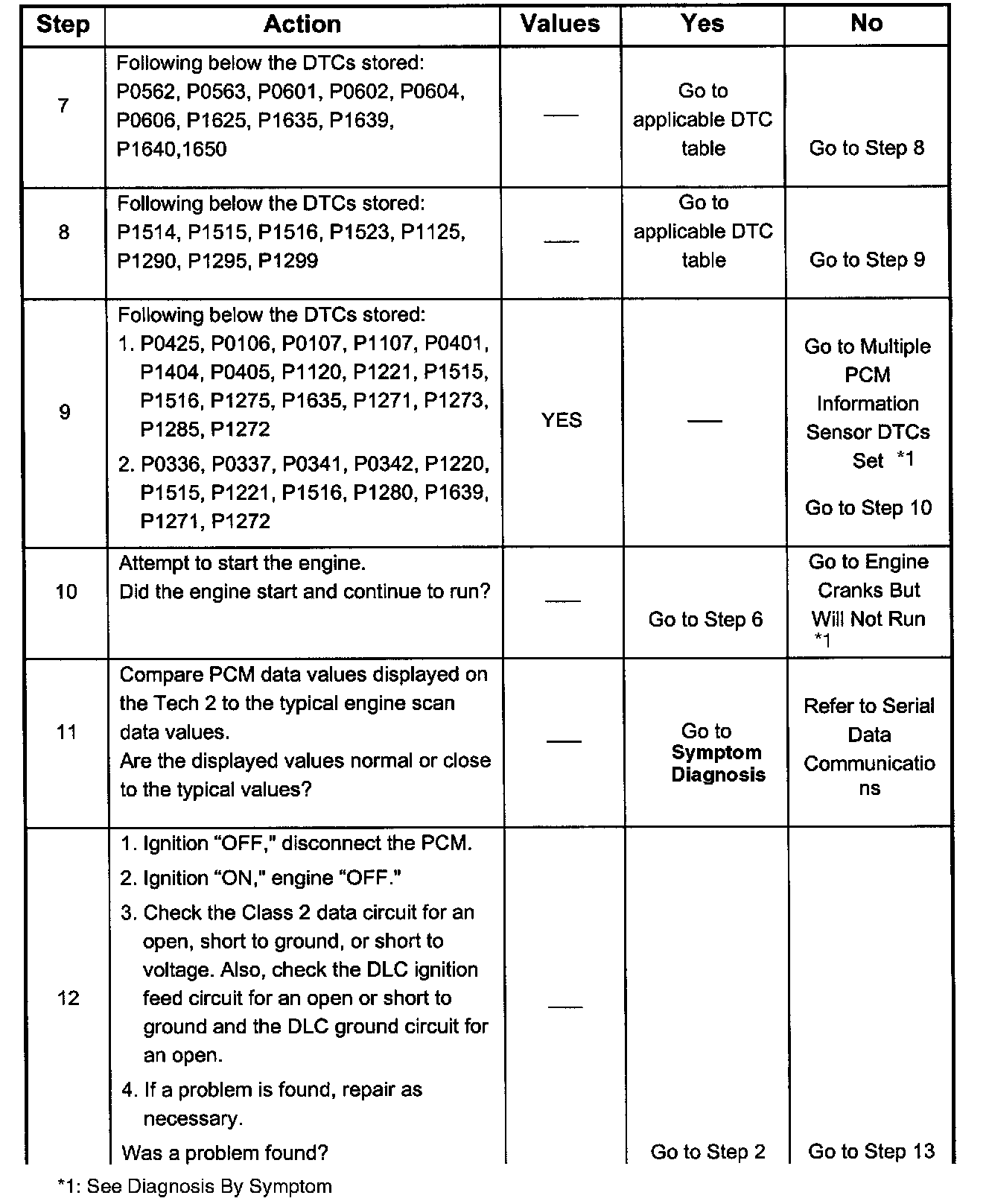 Number(s) below refer to the step number(s) on the Diagnostic Chart: