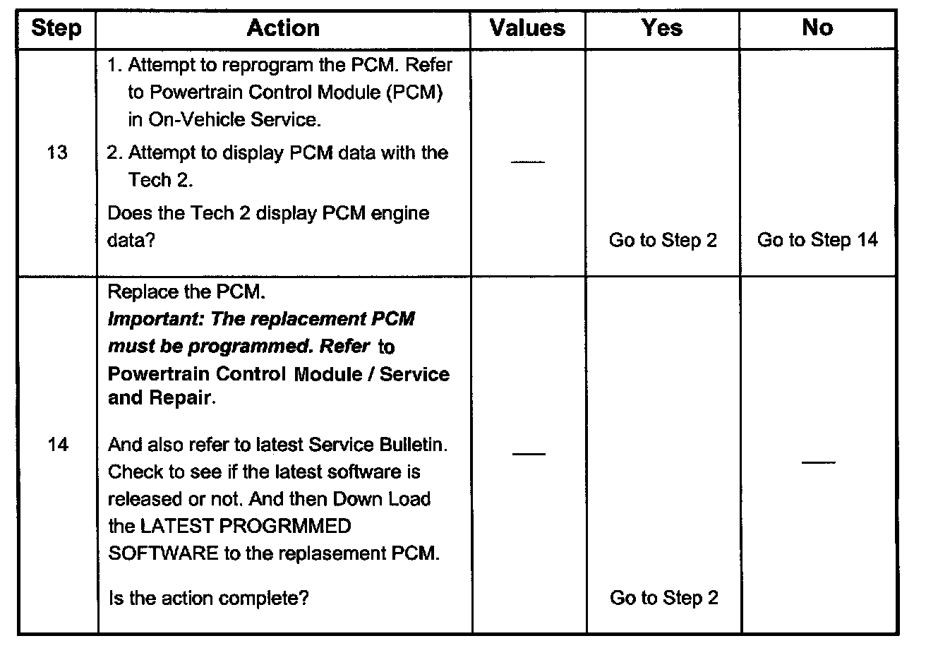 14. This vehicle is equipped with a PCM which utilizes an electrically erasable programmable read only memory (EEPROM). When the PCM is replaced, the new PCM must be programmed. Refer to PCM Replacement and Programming Procedures in Powertrain Control Module (PCM) and Sensors.