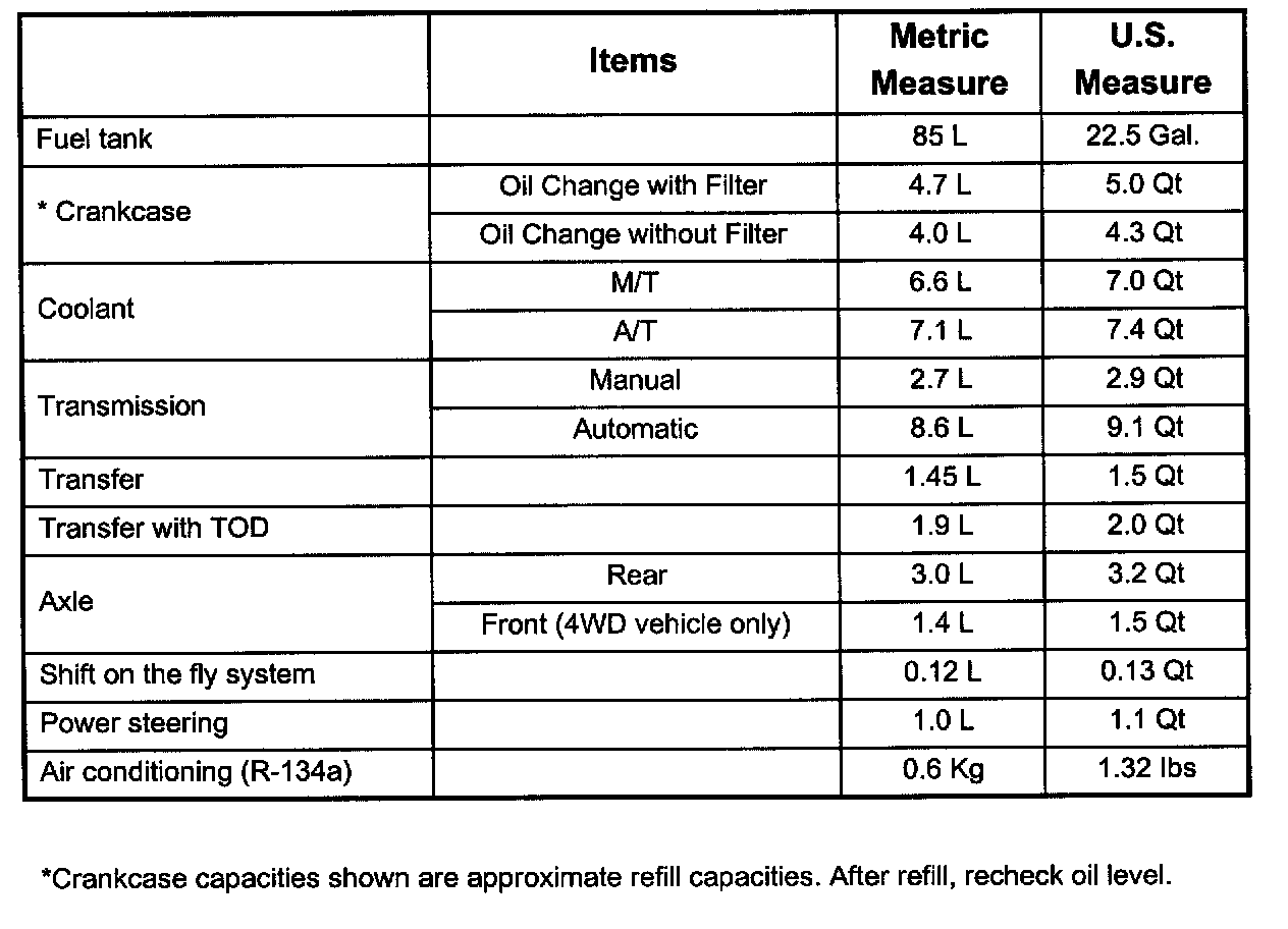 General Capacity Specifications