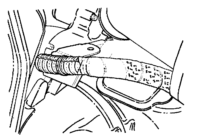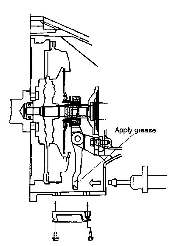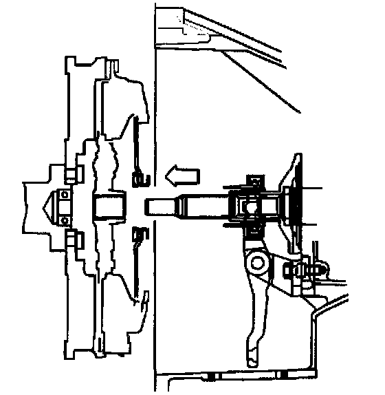 5. Apply a force of about 113 N (26 lbs.) to the tip of the shift fork in the direction of the transmission to engage the clutch pressure plate and release bearing.