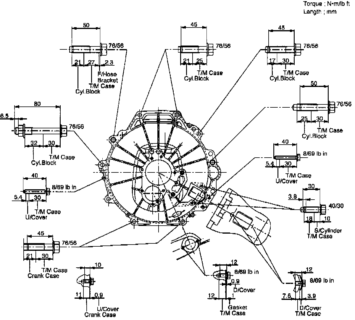 4. Install the transmission to the engine. Tighten the transmission nuts and bolts.