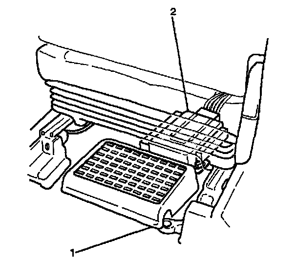 2. Move the driver's seat forward and remove the second seat foot rest (1).