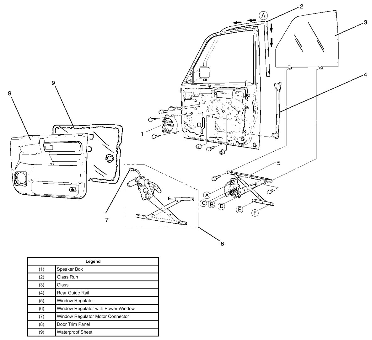 Front Window Regulator, Glass And Glass RunParts Location: