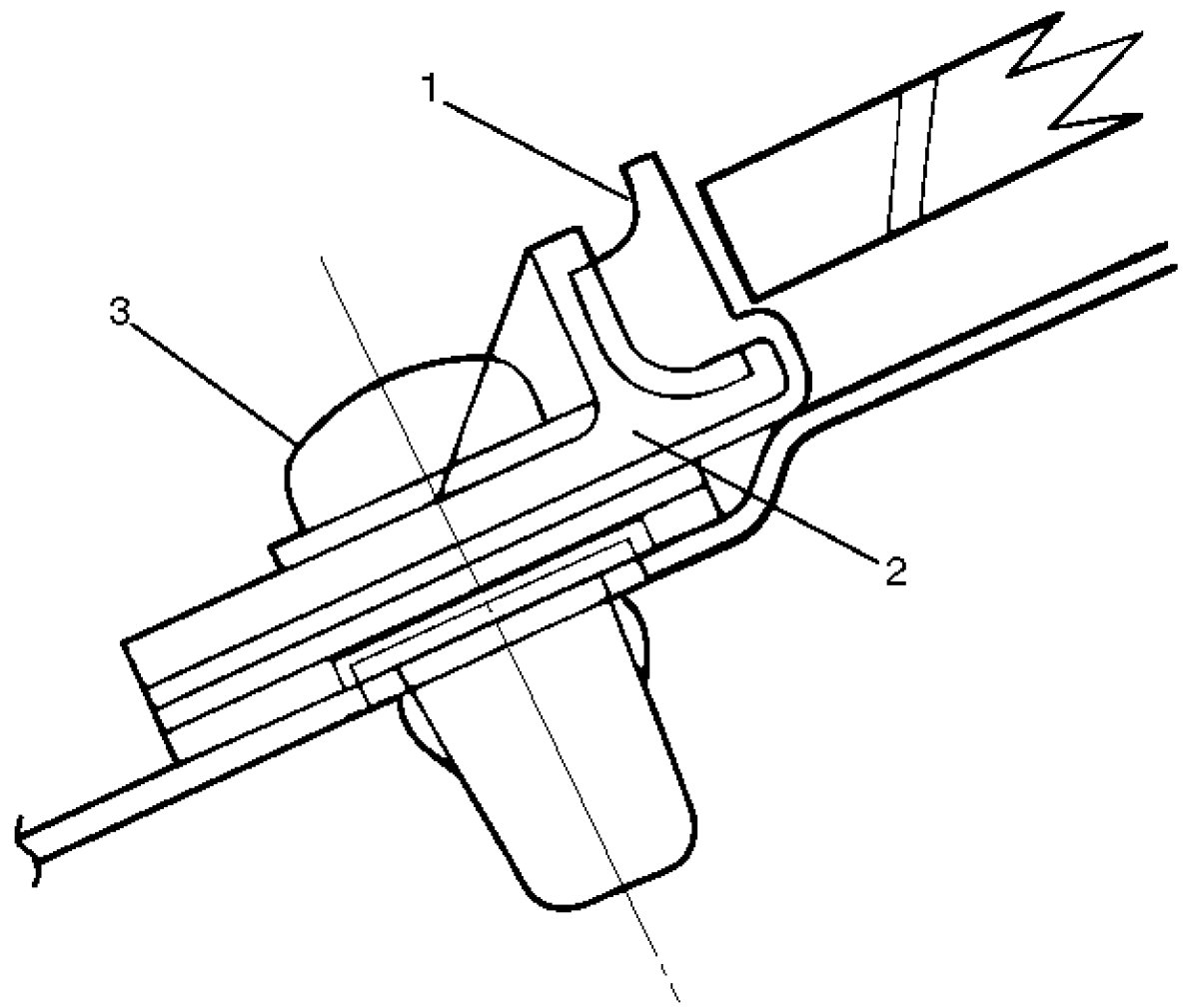 - Peel off the adhesive tape (2) and install the moulding to the fixed position of the windshield (3).