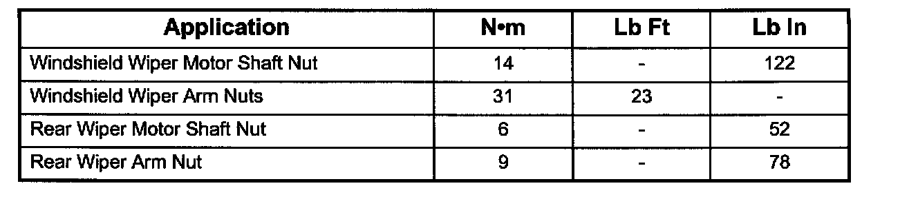 Wiper and Washer Systems: Specifications